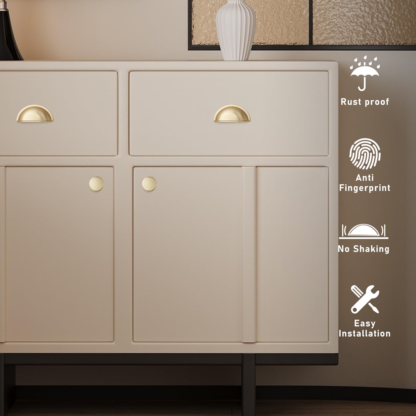 Faits saillants · Matériau. Métal · Marque. Yagman · Couleur. Or brossé · Style. Moderne · Finition extérieure. Or brossé · Type de poignée. Bouton Yagman Lot de 5 poignées d'armoire de cuisine dorées brossées – Boutons de tiroir de commode modernes en satin doré satiné – Boutons de placard de salle de bain à trou unique pour l'amélioration de la maison Matériaux durables : fabriqués en alliage de zinc, nos boutons de placard dorés disposent d'une structure robuste et d'une texture raffinée. Lot De 5 Poignées D'Armoire De Cuisine - 96 Mm - En Acier Inoxydable Yagman Lot De 5 Boutons D'armoire De Cuisine Ovales En Alliage De Zinc Yagman Entretien : nous sommes là pour vous aider à tout moment. Le service Yagman vous assure, vous et votre famille, une expérience d'achat agréable. Si vous avez des questions lors de l'achat ou de l'utilisation, n'hésitez pas à nous contacter. Confort et fonctionnalité : avec différentes formes de boutons et styles polyvalents, nos boutons offrent une sensation luxueuse, naturelle et une prise en main confortable. Les boutons inférieurs et supérieurs sont solidement connectés pour une résistance et une durabilité maximales. HOStorage T1-Étagères Murales Modernes Brossées Or Noir Blanc... Sélection variée : pour vous permettre de trouver plus facilement les boutons de placard dorés que vous aimez en moins de temps, nous avons regroupé notre série Golden ici.