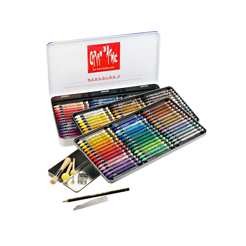 Effaçable pour réaliser vos colorisation avec les neocolor II de carandache Les pastels à la cire aquarellables Neocolor® II Aquarelle témoignent de la grande capacité d’innovation de la Maison Caran d’Ache. Créés en 1975, dans la continuité de la célèbre gamme Neocolor® I, ils offrent d’innombrables possibilités créatives aux artistes et aux amateurs de dessin Neocolor 2 CARAN D'ACHE NEOCOLOR II WATERSOLUBLE Pervenche Neocolor 2 Caran D'ache Periwinkle Blue Caran d'Ache Neocolor II Aquarelle Wax Pastel (131) · Water-soluble wax pastel · High pigment concentration for bright and opaque colours...