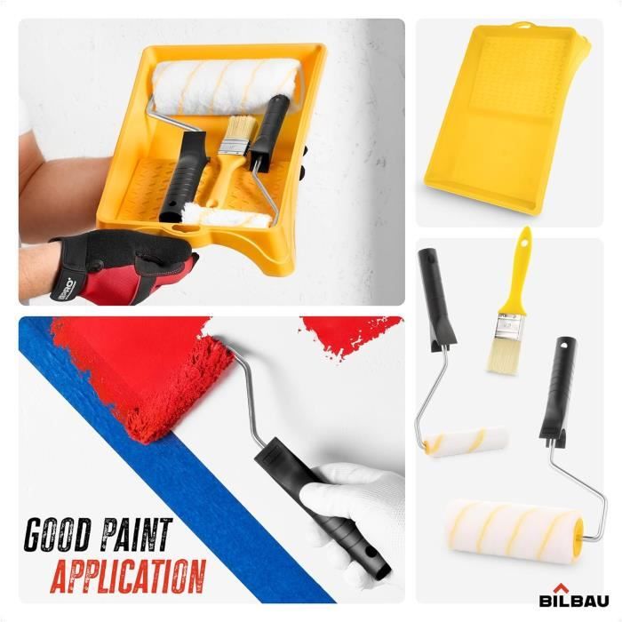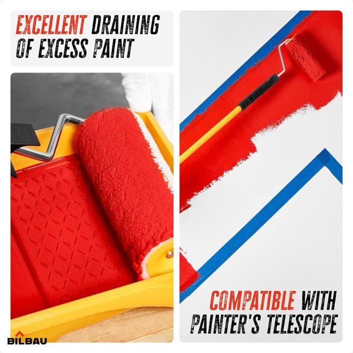Rouleau de peinture : 2 rouleaux de peinture, droits, ultra fins. Lot de 2 rouleaux de peinture professionnels de 20 cm + bac à peinture. Accessoire bateau : EUROMARINE Bac à peinture anitfouling pour rouleau Kit complémentaire optimal pour votre gamme de peinture ou de bricolage. Les rouleaux de grattage existants permettent d'essuyer facilement l'excédent de peinture. Fabriqué en plastique de haute qualité, incassable et sans solvant. Le bac à peinture est adapté pour tous les artisans, peintres, maîtres de peintres et bricoleurs. Détails du rouleau : rouleau en polyamide - Longueur : environ 20 cm - Diamètre : environ 70 mm - Hauteur des poils : 17 mm - Support inclus (étrier) : Ø 8 mm Pratique : le rouleau est idéal pour peindre les murs et les plafonds, après séchage de la peinture, il crée une surface fine. Idéal pour tous les types de murs. Sans solvant et incassable. Rouleau De Peinture Set De Rouleaux à Peinture Lot De 2 5 Cm Rouleau Peinture Ancienne Ce kit de peinture répond à vos attentes et contient tout ce dont vous avez besoin pour peindre, y compris tous les outils de base nécessaires pour les projets... Dimensions : 20 x 7 cm Poils : 1,7 cm. Rouleau à peinture de 20 cm de qualité professionnelle pour une application parfaite de la peinture murale ou de la peinture de façade.