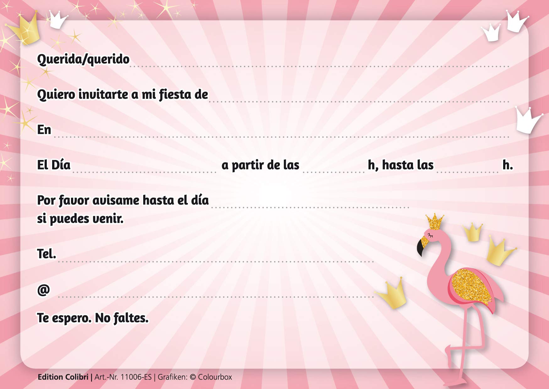 La marque Edition Colibri est une micro-entreprise familiale récente, qui conçoit avec beaucoup d'amour et de luxe de détails, imprime et distribue ces cartes vous-même. Le verso est blanc vierge pour écrire librement. Format de carte postale DIN A6 - 148 x 105 mm - Impression de qualité supérieure sur carton solide de 300 g Il... 17 h fête de l’hispanité : RCP présente la compagnie Alexandre Roméro :un voyage aux couleurs de l’Andalousie avec différentes destinations, un autre regard sur les danses ( participation libre et bienvenue ) , suivie d’un apéritif tapas offert par … Continuer la lecture → + Vous recevrez 10 cartes d'invitation en espagnol (14,8 x 10,5 cm) pour le prochain anniversaire d'enfant ou fête Comme remerciement spécial pour l'acquisition de notre jeu de cartes postales, nous semons un arbre dans notre projet au Népal. Nous nous soucions beaucoup de la qualité et du design attrayant et frais. De nombreux produits imprimés de Edition Colibri sont imprimés en carbone neutre, c'est-à-dire nous soutenons depuis de nombreuses années des projets écologiques pour l'équilibre environnemental. + Remplissez simplement le texte de l'invitation au dos, répartissez - et le tour est joué. Nos cartes d'invitation de haute valeur sont faciles pour l'écriture au dos, de préférence en utilisant un stylo pour éviter les tâches. Depuis 2010, la microentreprise Edition Colibri est présente au Népal en transférant régulièrement des dons à cette fin. Edition Colibri Lot De 10 Invitations En Espagnol « Fête Edition Colibri 10 Invitaciones en español FIESTA DE VERANO con FLAMENCO: Juego de 10 invitaciones cumpleaños infantil/fiesta para niñas (11050 ES) : : Juguetes y JuegosInformación adicional ASIN B0B1CHY621 Opinión media de los clientes 3.2 3.2 de 5 estrellas3 calificaciones 3.2 de 5 estrellas Producto en desde 14 enero 2025 Dimensiones del producto 10 x 8... Fête de l'Hispanité - Centro Espagnol de PerpignanCentro Espagnol de
