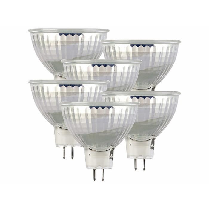Lumière particulièrement claire Led Plafond Luminea Lot De 6 Spots LED - Acheter Sur Spot Led Température de couleur : blanc lumière du jour (6500 K), Puissance nominale : 3 W L'éclairage blanc lumière du jour est idéal dans un bureau, mais aussi dans une salle de bain ou une cuisine. L'éclairage blanc lumière du jour est idéal dans un bureau, mais aussi dans une salle de bain ou une cuisine. Grâce à des LED ultra-économes en énergie, ces spots à LED vous permettent de faire baisser votre consommation d'électricité sans sacrifier la qualité de l'éclairage 6 spots LED GU10 avec boîtier de verre, par Luminea , Tension : 230 V Flux lumineux à la fin de la durée de vie nominale : 80 % Lot de 6 spots LED avec boîtier en verre - Classe d'efficacité énergétique : E - Tension : 230 volts - Luminosité : 250 lumens - Température de couleur : blanc lumière du jour, 6500 Kelvin - Puissance nominale : 3 watts - type de douille : GU10 - Rendu des couleurs : 80 Ra - Durée de vie nominale de la lampe : 20.000 heures - Nombre... Type de culot : GU10 Faites un geste pour l'environnement ! Luminea GU10 tageslichtweiß: 18er-Set LED-Spotlights, Glasgehäuse, GU10, 3 W, 25 6 spots LED GU10 avec boîtier de verre, par Luminea, Tension : 230 V, Luminosité : 250 lumens Nombre de cycles lumineux avant défaillance prématurée : jusqu'à 15000 Rendu des couleurs : 80 Ra Temps de démarrage avant d'atteindre 60 % du flux lumineux complet : 0,5 s Idéal pour cuisine, salle de bains ou bureau