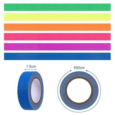 Il peut être utilisé pour décorer les murs, les sols, les fenêtres, les pistes de danse, les meubles, et peut également être attaché aux vêtements et utilisé pour les performances scéniques., 3., Il peut être utilisé pour marquer différents objets, tels que les interrupteurs, les télécommandes, les câbles de chargement, les téléphones portables, les escaliers, etc. Les couleurs vives facilitent le repérage et l'organisation des objets. Une fois appliqué, le ruban agit comme un rappel de sécurité la nuit pour éviter les bosses et les bleus. 6 Rouleaux de Ruban Fluorescent, Rubans Néon Lumineux, Ruban Adhésif Uv Caractéristiques: 1., Il s'agit d'un ruban fluorescent UV qui ne brille pas par lui-même, mais qui a un effet illuminant sous les UV et la lumière noire, conçu pour les enfants, les adultes et les fêtes d'Halloween à la lumière noire., 2., Le rubans adhésifs en ruban néon convient à presque toutes les applications, il peut être utilisé sur toutes les surfaces sèches, y compris le carrelage, le verre, les vêtements, la moquette, le bois dur, le plastique, etc. Spécifications: Couleur: Jaune, Vert, Rose, Orange, Bleu et Violet Matière: Coton, Caoutchouc Bandbreite: 20 mm Longueur de la bande: 13 m Le paquet comprend: 🌈6 x Fluorescente Néon Ruban HTVRONT Lot de 6 rouleaux de ruban adhésif néon réactif à la lumière noire, 6 couleurs fluorescentes pour fête UV, 1,5 cm x 5 m · Options d'achat et ajouts... Il peut être fixé sur n'importe quelle surface sèche et se déchire sans laisser de résidu collant. Le ruban néon ne brille pas par lui-même, mais produit un effet étonnant sous lumière UV ou noire. L'adhésivité peut se détériorer si vous les déchirez et les collez à plusieurs reprises pour une utilisation prolongée. 🌈【Créativité Illimitée】 Ce ruban adhésif de couleur néon est parfait pour les travaux manuels ou les projets fantaisistes, tels que la réalisation de peintures murales, la décoration d'albums, l'emballage de cadeaux, la division de zones sur des tableaux blancs, le jointoiement de carreaux, etc. Ruban néon pour lumière noire UV : plusieurs couleurs différentes que vous pouvez utiliser pour créer toutes sortes de motifs créatifs, simple à utiliser, ruban fluorescent à lumière noire UV Scotch Fluorescent JJYHEHOT 6 Rouleaux UV Fluorescente Néon Ruban, Ruban Adhésif Scotch Fluorescent Dans Le Noir Elles peuvent même être conçues comme des flèches pour indiquer aux gens où ils peuvent aller sous une lumière noire., 4., Il convient à une utilisation à court terme et ne conserve pas son pouvoir adhésif pendant une longue période.