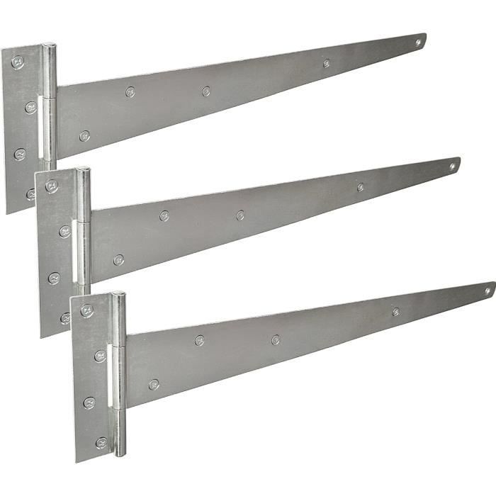 Le support de charnière robuste prend facilement en charge les grands portails, et l'épaule solide unique permet d'ouvrir complètement le portail. ✅Taille recommandée : la règle générale est que la longueur de la charnière doit être d'au moins un tiers de la barrière que vous accrochez. Charnière Pour Portail De Jardin Paire De Charnières Robustes à Crochet Réglable De 300 Mm En Zinc Penture Portail Lourd Largeur du bracelet : 58 mm. Porte-roue de secours réglable en hauteur avec échelle pour FORD TRANS... Finition : revêtement de protection en zinc galvanisé à chaud résistant aux intempéries qui offre une durabilité durable et une résistance à la corrosion, ce qui les rend adaptés pour une utilisation en intérieur et en extérieur ✅Application : ils sont parfaits pour sécuriser des portails lourds, des portes à usage élevé, des portails extérieurs, des portes de garage, des portails en bois et des écuries dans les applications domestiques, commerciales et agricoles Construction de qualité supérieure : ces charnières réglables sont fabriquées à partir de fer de haute qualité, un métal solide et robuste connu pour sa résistance et sa longévité. ✅ Dimensions : plaque arrière : 160 x 58 mm | Longueur du bracelet : 320 mm | Largeur du bracelet : 58 mm | Épaisseur : 6 mm | Diamètre du crochet : 20 mm Diamètre du crochet de la plaque arrière : 20 mm. Matériau : ces charnières réglables en T sont fabriquées en fer de qualité supérieure, un métal solide et robuste connu pour sa résistance et sa longévité. Longueur du bracelet : 320 mm. Ces charnières sont fabriquées en fer de qualité supérieure, un matériau durable et un composant de matériel robuste. Si le portail commence à s'affaisser ou nécessite plus ou moins d'espace après l'accrochage, ces charnières vous permettent un réglage facile en utilisant le boulon fileté et les écrous. Idéal pour accrocher des portes lourdes ou des portails devant le cadre ou le poteau. Paire de charnières réglables avec crochet et bande galvanisée 300 mm Nos charnières réglables à crochet et à bande sont livrées en deux parties, une plaque de charnière rectangulaire qui s'adapte au poteau de portail, et une bande qui s'adapte au portail. ✅Description : Les charnières réglables à crochet et à bande sont livrées en deux parties : une plaque de charnière rectangulaire qui se fixe au poteau de portail et une bande qui se fixe au portail. Caractéristiques : les charnières en T réglables offrent un soutien supplémentaire aux portes et permettent un large degré de rotation à votre porte afin qu'elle puisse s'ouvrir et se fermer librement. Toutes les fixations nécessaires sont fournies pour une installation sans tracas. Wyre Direct Paire de charnières pour portail ajustable 300 mm/12 galvanisé robuste, Stable et crochet élastique Fixations Caractéristiques : Matériau : fer., Finition : galvanisée. La base en fer offre la résistance et la durabilité nécessaires L'ensemble complet est livré avec une couche de protection en zinc galvanisé à chaud qui a une propriété de résistance à la corrosion. Le crochet en T réglable et les charnières à bande permettent au portail ou à la porte de tenir fier de l'épaisseur de la plaque de charnière. Cette charnière est la solution parfaite pour vos besoins de matériel de portail Par exemple, un portail de 1000 mm de large aura besoin d'une charnière de 334 mm.