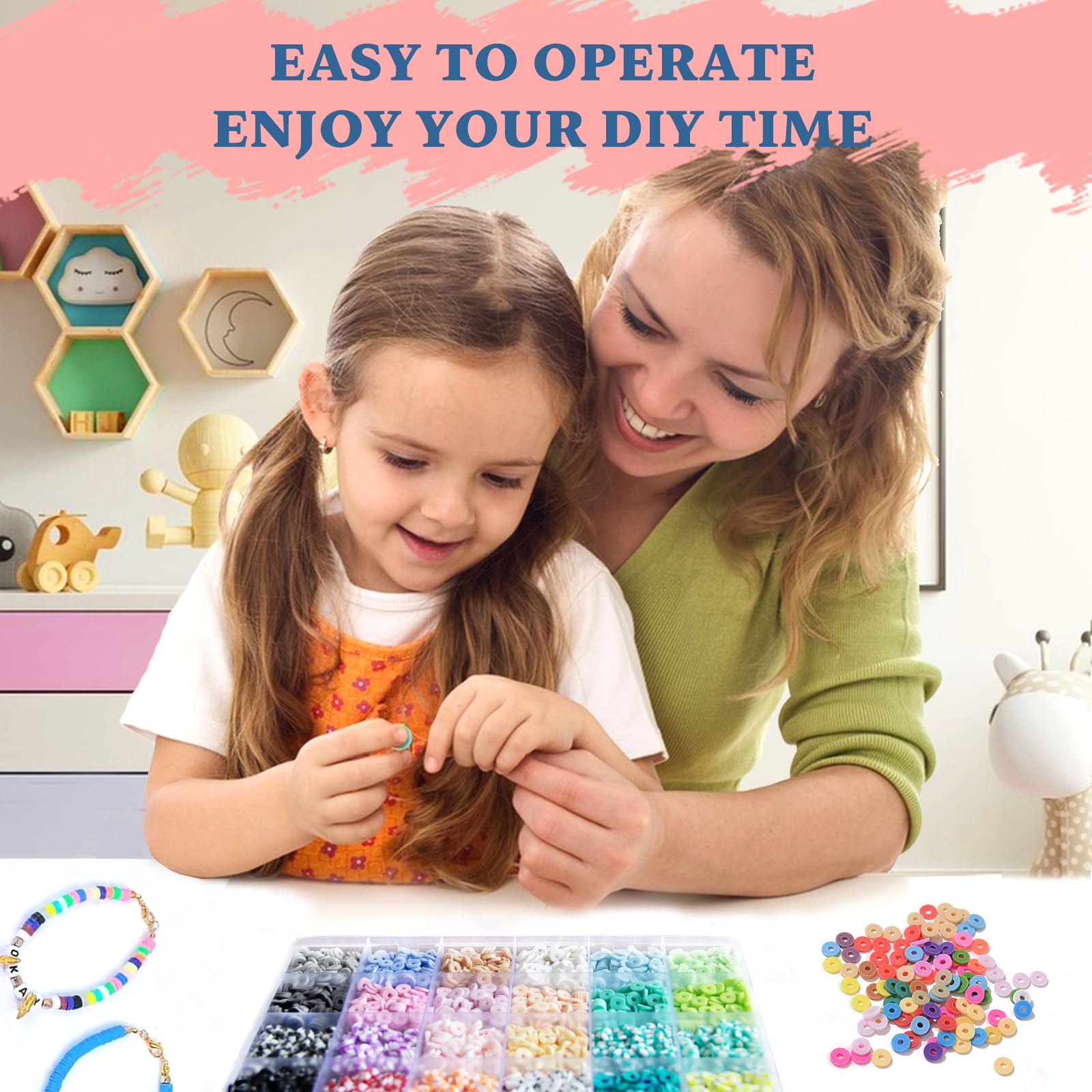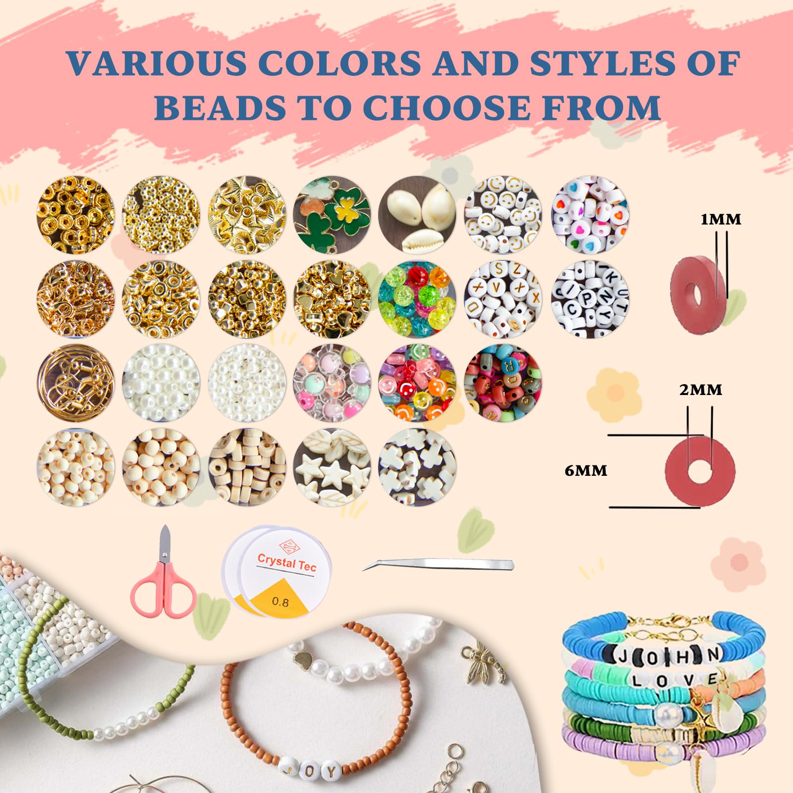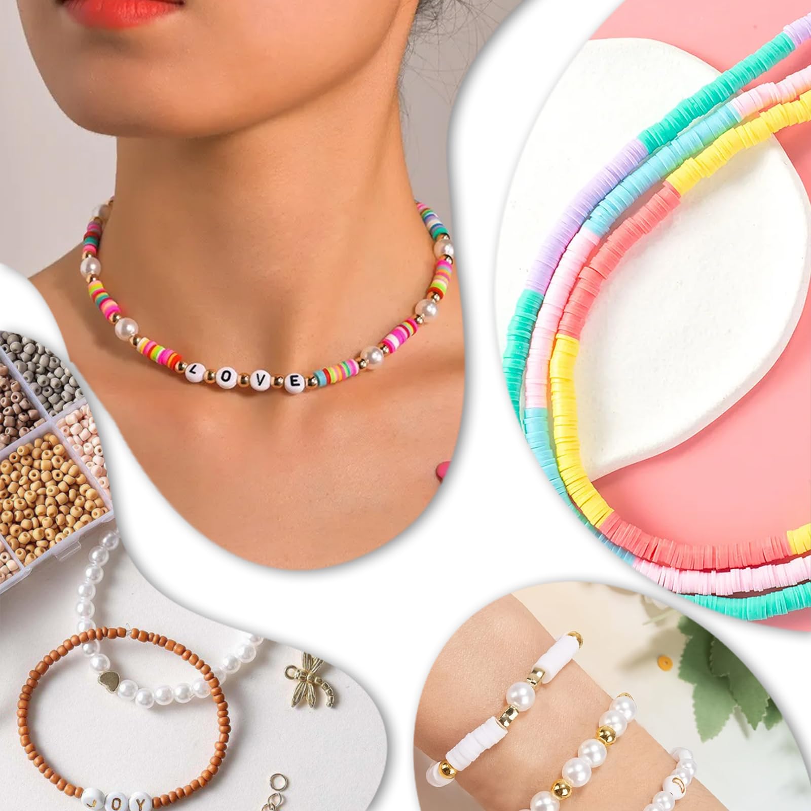 Kit de bricolage complet : Ce kit tout compris comprend tout ce dont vous avez besoin pour commencer à fabriquer dès maintenant. Il comprend une variété de perles, des fermoirs mousquetons, des anneaux en fer, une aiguille, une pince à épiler, des ciseaux et du fil élastique, ce qui en fait un cadeau parfait pour les débutants comme pour Vous aide à soulager le stress et à éliminer l'anxiété, ce qui en fait un cadeau idéal pour vos amis, votre famille et vous-même. Le lot se compose de 4 boîtes, chacune avec 24 compartiments de couleurs différentes, ce qui vous permet de créer d'innombrables combinaisons créatives. Bijoux et perles : bracelets, colliers, kits Kit De Perles Lot De 10 000 Perles à Enfiler Pour Bracelets Et Perles De Lettres Kit De Perles Amazon Tout est emballé dans une boîte de rangement organisée qui empêche les perles de se mélanger. Il est idéal comme cadeau pour les anniversaires, les vacances ou d'autres occasions spéciales. Possibilités de création créatives : avec ce vaste kit de perles, vous pouvez laisser libre cours à votre créativité. Les perles d'argile douces sont légères et ne se décolorent pas, tandis que les petites perles de grain de riz ont une surface lisse et des couleurs vives qui ne se décolorent pas. Matériaux de qualité supérieure : les perles sont fabriquées en matériau de haute qualité, sûr et durable. Un kit créatif trop mignon pour les petites mains ! Ce set comprend 24 types de perles (fleurs, lettres, fruits, étoiles…) 2 cordons élastiques ciseaux... Kit complet de perles : notre kit de perles de bracelet à faire soi-même contient une variété de perles et d'accessoires, y compris des perles d'argile souple de 6 mm, des petites perles de grain de riz de 3 mm, des perles de lettre, des perles en bois, des perles, des coquillages et d'autres accessoires décoratifs.