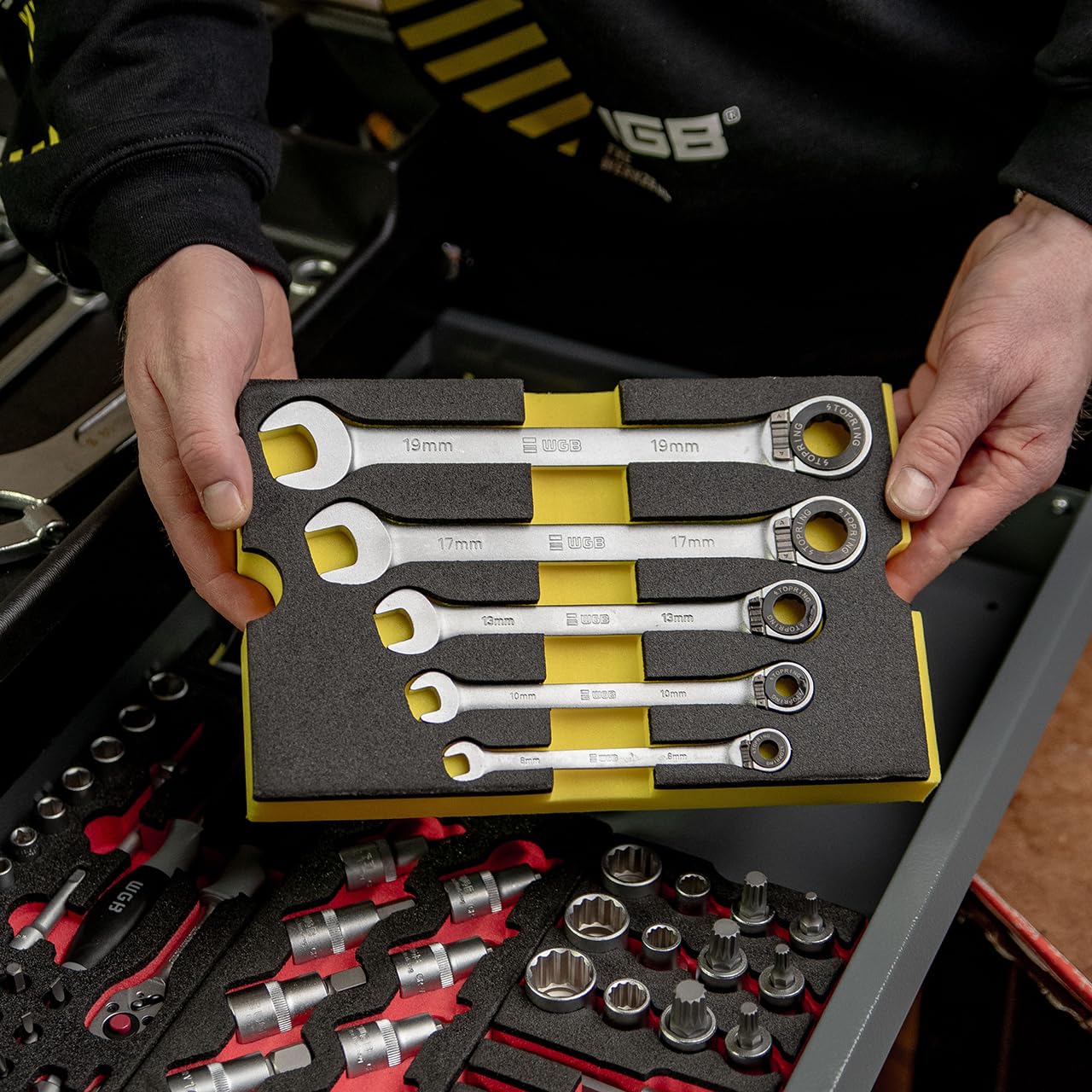 Hochwertige Moduleinlage mit säurebeständigem, extrastabilem Boden und Griffmulden. Et comme nous produisons et utilisons nous-mêmes depuis plus de 100 ans, les lettres de notre nom représentent une forge avec un travail de précision allemand - c'est là que nous venons Passend für WGB-Werkstattwagen, TANOS-Systainer, L-BOXX und die meisten Werkbänke. Mit den MOFLEX-Modulen von WGB bist du für jeden Einsatz gut vorbereitet Jeu de clés polygonales 8 pièces Compatible avec les servantes WGB, Tanos Systainer, L-BOXX et la plupart des établis de travail. Transportable en toute sécurité avec une flexibilité maximale. Egal für welches Gewerk, egal ob für die Werkstatt oder die Baustelle. Avec les modules MOFLEX de WGB, vous êtes bien préparé pour chaque utilisation. Ringschlüssel Set gekröpft in Werkzeug Einlage 8 teilig Passend für WGB-Werkstattwagen, TANOS-Systainer, L-BOXX und die meisten Werkbänke. Mit den MOFLEX-Modulen von WGB bist du für jeden Einsatz gut vorbereitet. Avec poignées encastrées Cle A Pipe PROJAHN Doppelgabelschlüssel Professional 6-27 Mm, 3,19 Main Hydraulique Avis (0 avis)Modul Doppelringschlüssel | No.6080 | Wgb Moflex [u950] Ce produit n’est toujours pas évalué. Soyez le premier ! Pour toute remarque liée à la livraison et SAV, veuillez nous contacter Questions & réponses (0 question) Une question sur ce produit ? N’hésitez pas ! Vous pouvez demander par exemple : Ce produit convient-il à un usage régulier ?Est-ce que ce produit est... Enthält Doppelringschlüssel DIN 838 in den Größen 6x7 - 8x9 - 10x11 - 12x13 - 14x15 - 16x17 - 18x19 - 20x22 mm Clé polygonale double DIN 8386 x 7 - 8 x 9 - 10 x 11 - 12 x 13 - 14 x 15 - 16 x 17 - 18 x 19 - 20 x 22 mm - Acier chrome-vanadium Insert en mousse résistant aux acides et aux lubrifiants
