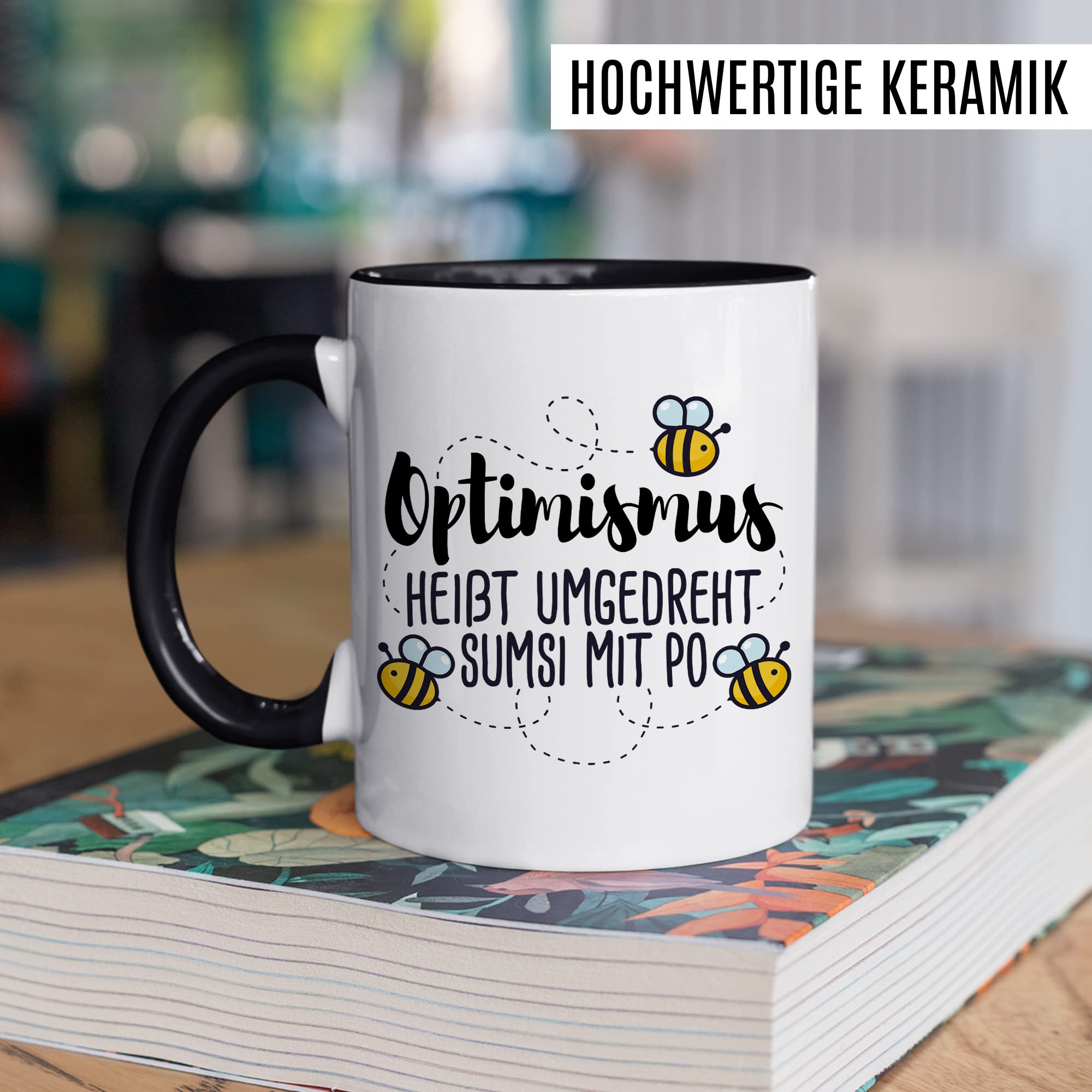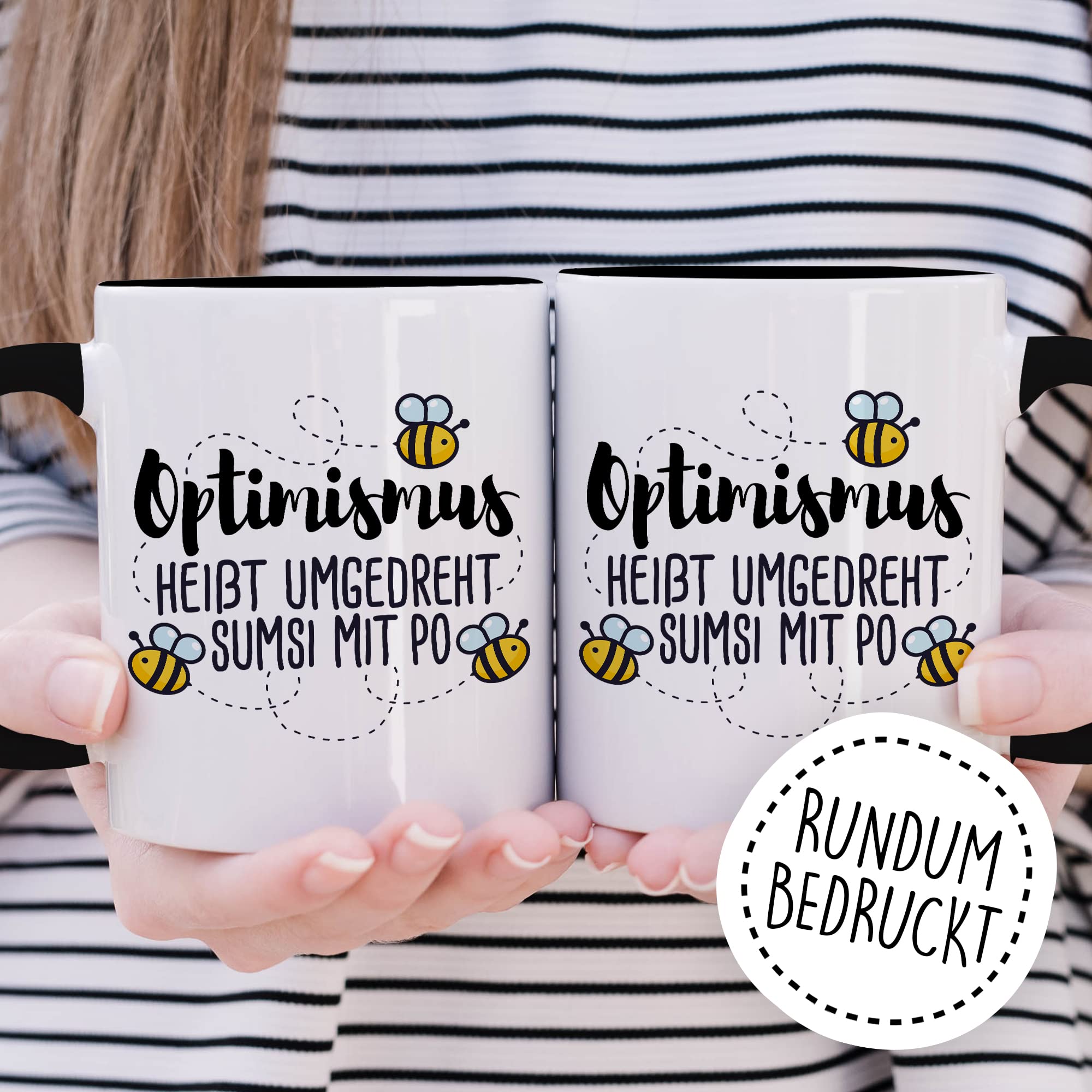Impression lavable au lave-vaisselle - Imprimée avec une technique de sublimation de qualité supérieure et donc particulièrement résistante. Tasse à café amusante pour tous les fans de Wortwitz et les biscuits de blague. Fabriqué à la main : fini, imprimé, emballé et expédié en Allemagne. L'impression robuste garantit un plaisir durable. Faites de chaque pause café une fête avec cette tasse amusante. Surface 100 % céramique de qualité supérieure. Un mug humoristique est un récipient à café ou à thé qui a des images ou des phrases drôles imprimées sur sa surface. Ces mugs sont conçus pour être vus par leurs propriétaires et leur entourage, et donnent aux personnes qui les utilisent une occasion de s'amuser et de sourire Impression des deux côtés et donc idéale pour les droitiers et les gauchers. Peut être utilisé comme tasse à café, tasse à cacao et tasse à café. Rendez la pause café plus amusante avec une tasse de jeu de mots amusant. Chaque tasse d'impression Pagma est conçue avec une attention particulière aux détails. Moustache Gracias Humour Phrase Drôle Jeu De Mots Cadeau Tasse Tasse Humoristique Avec Inscription Wortwitz - Tasse à Café Optimisme - Idée Cadeau Drôle - Sarcasme Sumsi Dans Les Fesses - Joli Jeu De Mots Amusant ( Blanc/noir Cette tasse humoristique fera sourire tout le monde.