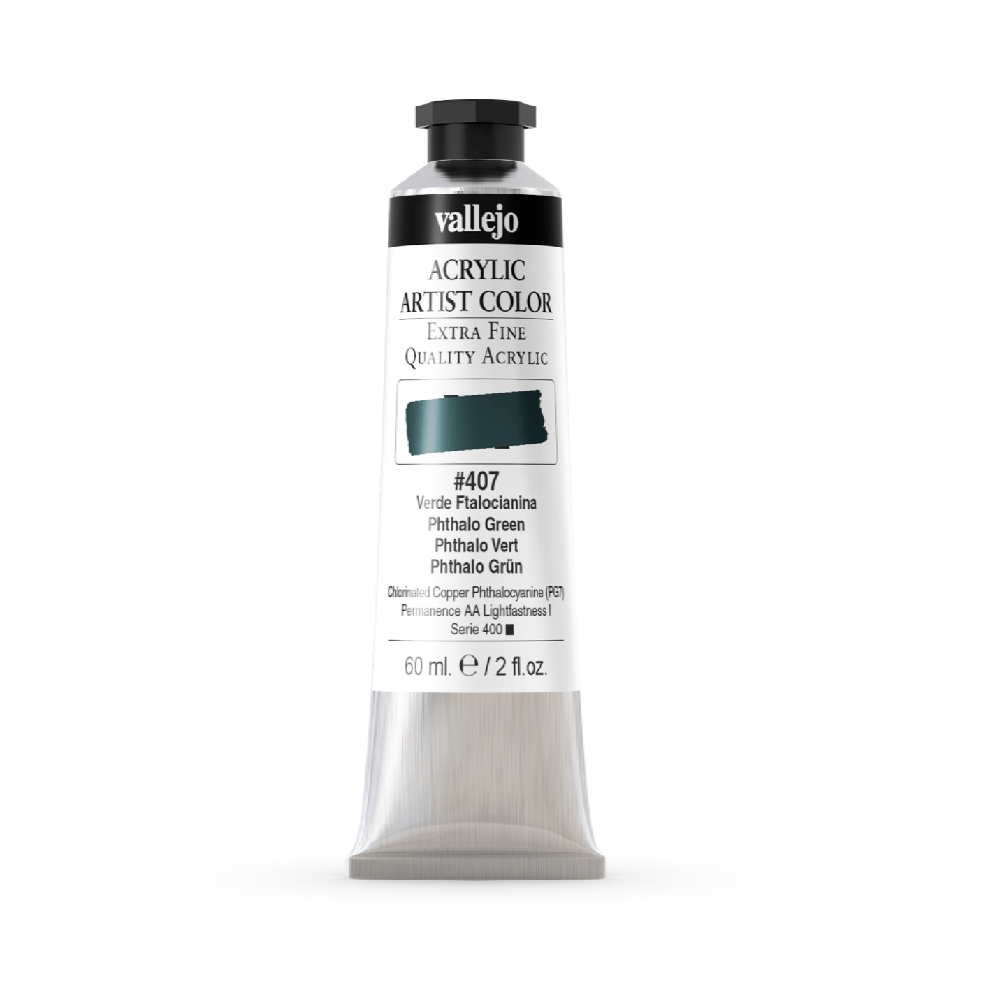 Vallejo a été l'un des premiers fabricants de peintures acryliques pour artistes en Europe. Résultat : Acrylic Studio : 12 couleurs en 200 ml. Toutes les couleurs sont conformes aux exigences de la norme américaine ASTM D-4236., Au fil des ans, la nuancier Acrylic Studio a grandi à 60 couleurs, toutes fabriquées avec des matières premières de haute qualité. Toutefois, les pigments très onéreux sont renoncés afin que toute la gamme de couleurs puisse être offerte à un prix modéré aussi bien dans les petits que dans les grands récipients. En 1980, Amadeo Vallejo a ensuite été convaincu par certains jeunes artistes de l'université des arts de Barcelone par l'utilité de proposer des peintures acryliques dans de grands emballages et à des prix abordables. La gamme Studio comprend le fond de teint Studio Gesso et le Mastic Primal (Art., 27) Dans les années 70, la société a dirigé ses 58 ml. Les grands formats, les peintures murales et les Happenings étaient à la mode. Tube aluminium conditionné Gamme Acrylic Artist Color. Vallejo Acrylic Studio 22006 Phtalo Green (200ml