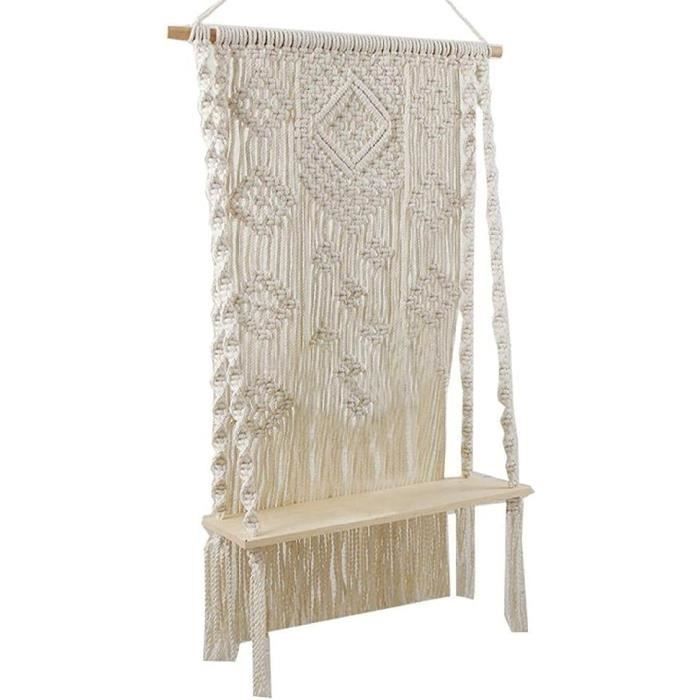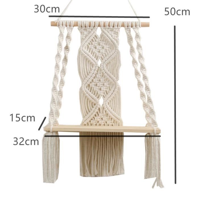 Dimensions du produit : environ 30 x 50 cm. Méthode d'emballage : sac OPP. Avec l'étagère, vos plantes peuvent avoir un grand espace de rangement. Étagère murale en macramé bohème à 2 niveaux en bois Caractéristiques : Nom : étagère à tapisserie. Grande durabilité : notre étagère à suspendre en bois est fabriquée avec une corde en coton naturel, hygiénique et durable. Couleur, BLANC ; Dimensions du produit, 50 x 32 x 15 cm ; Fonctionnalités spéciales, Handmade Boho Design, Unique Materials, Easy Installation ; Forme, Blanc... Vous pouvez simplement l'accrocher sur le mur de chevet ou un mur étroit, le mur au-dessus du canapé ou de la fenêtre. Il est robuste et durable et peut être fixé au mur. Contenu : 1 étagère à tapisserie. Une excellente idée de cadeau pour un anniversaire, un mariage ou une fête à thème bohème. Mophorn Cheminée de cheminée , 60 x 8 x 6, peut supporter jusqu'à 50... Étagère Murale En Macramé, étagères Flottantes Pour Plantes D'intérieur Matériau + accessoires : corde en coton + bois de hêtre de qualité supérieure (ne convient pas pour les carreaux de céramique et les murs en verre) Processus : fabriqué à la main, chaque produit est unique, il peut y avoir une tolérance de taille.