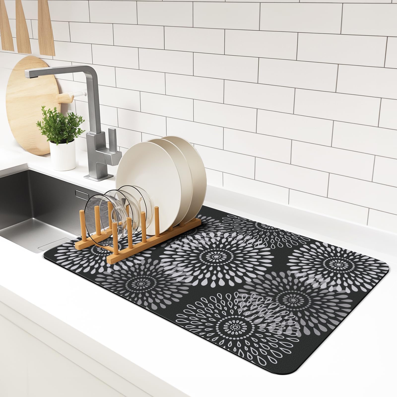 Choisissez le tapis de séchage au design unique comme décoration de cuisine pour embellir votre maison LuxStep Tapis égouttoir à vaisselle 38,1 x 45,7 cm Noir. Options disponibles. Modèle. Black; Blue; Grey; Khaki. Taille. 15x18 inch; 16x24 inch; 2-15x18 inch... LuxStep Tapis de cuisine imperméable rembourré anti-fatigue Facile à nettoyer : garder votre tapis de comptoir de cuisine propre est très simple ; lorsque le tapis doit être nettoyé, il suffit de l'essuyer avec un chiffon humide ou simplement de le rincer à l'eau ; assurez-vous de le suspendre pour le sécher à l'air libre après le nettoyage Tapis égouttoir Soldes LuxStep Tapis De Séchage Super Absorbant Pour Comptoir De Cuisine Avec Tapis De Séchage égouttoir Notrax - 166S0410CH NoTrax 166 Guzzler Tapis d'entrée avec envers en... Excellente absorption de l'eau : notre tapis de séchage à vaisselle est conçu pour bien absorber pour laisser vos plans de travail secs et pour rendre vos expériences culinaires plus agréables Multi-usage : ce tapis de séchage léger est parfait pour de multiples utilisations ; il suffit de placer le tapis de séchage où vous le souhaitez, comme la salle de bain, sous l'évier, sous le vase, ou sur une étagère, pour protéger la surface et la garder propre