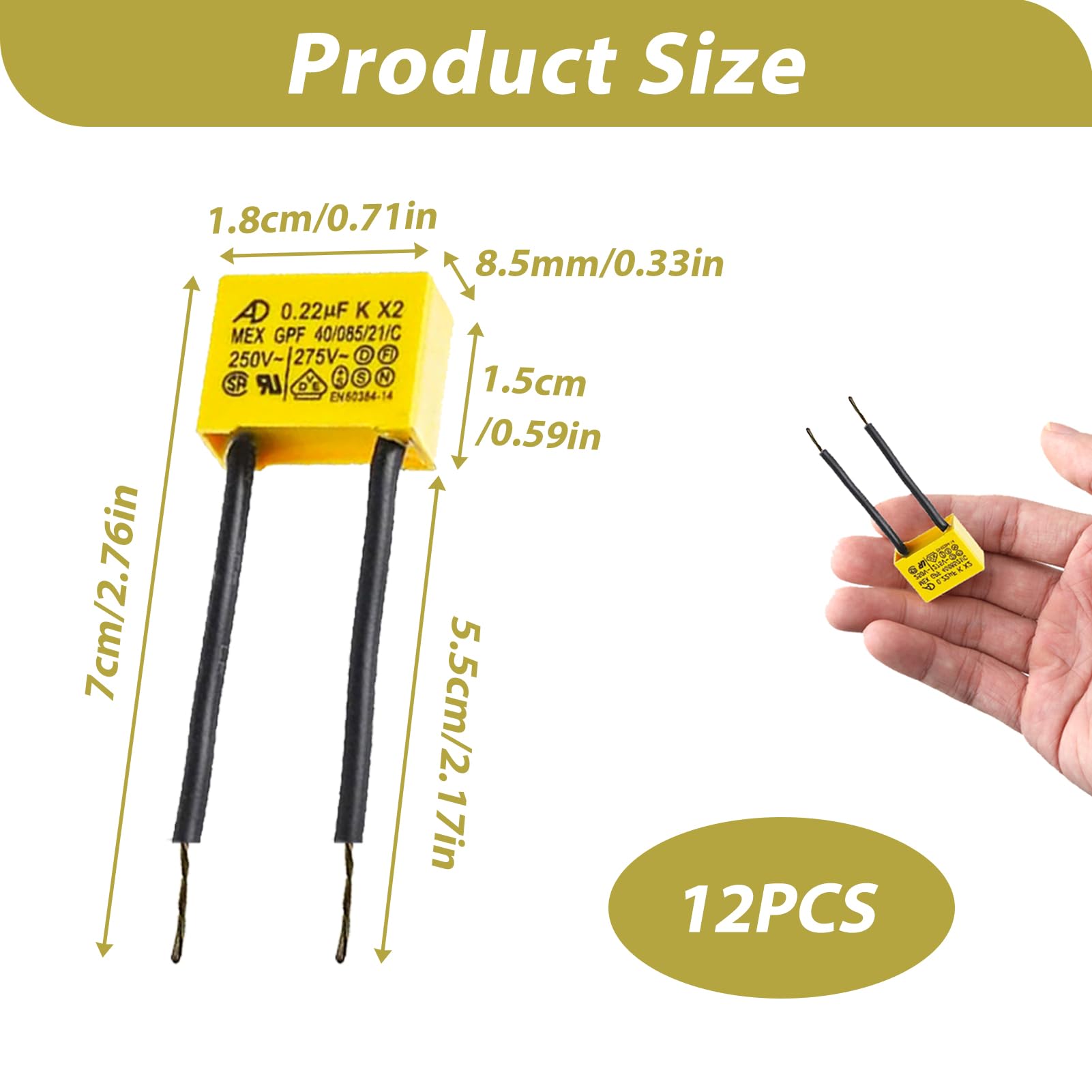 Utilisé dans divers appareils électroménagers, composants électroniques, radiateurs, etc. Large gamme d'applications : Le Condensateur Polypropylène peut être utilisé dans divers appareils électroménagers, composants électroniques, radiateurs, etc. Happy-MAP Film polypropylène Condensateur sécurité 0047uF 275V AC X2 Fournie dans une boite avec support et CD d'installation Capacité : 0,22 μF/220 nF (± 10 %) ; tension alternative : 275 V. Condensateur Mkp X2 0.22 LNGJIN Condensateur Polypropylène,22 Pièces 0.22µF 275V X2 Condensateur Mkp 220nf Réduisez les interférences des produits LED avec les récepteurs radio. Perte de basse fréquence : Condensateur Sécurité présente une faible perte de fréquence et une longue durée de vie. Dimensions compactes : longueur 18 mm, largeur 8,2 mm, hauteur 14,5 mm, filaire. Capacité : 0,22 uF/220 nF (± 10 %) ; tension alternative : 275 V. Suppression des interférences LED : Le Condensateur Polypropylène améliore les interférences radio des produits LED et assure une transmission stable. 6 Pièces Condensateurs Polypropylène 0,22uF 275V X2...