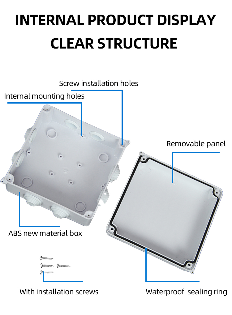 Le couvercle utilise des vis autotaraudeuses pour pénétrer dans les petits trous pour une utilisation facile. La bo?te de jonction externe convient à l'intérieur et à l'extérieur, tels que la communication, l'éclairage, la bo?te à instruments, l'équipement électrique, etc. Boîte de Jonction étanche, Plastique ABS, classé IP65 Conception durable et résistante à l'eau: Cette clôture en plastique d'ABS est conçue pour fournir une solution sûre et fiable pour l'équipement électronique extérieur, avec un niveau de la protection IP67 l'assurant est imperméable et antipoussière, répondant aux exigences de l'utilisateur pour les environnements durs ?quipé de 4 vis assorties et de bouchons d'extension, pour une installation facile. Boîte De Jonction étanche IP65 Pour L'extérieur - Connecteurs De Câble En Plastique (150 X 100 X 70 Mm grade: IP65Taille: 100*100*70mmCaractéristiques du produit?: étanche, antipoussière, coupe-vent, antichocL'emballage comprend:1 x bote de jonction étanche en ABS Le c?té intérieur du couvercle a une bague d'étanchéité renforcée en matériau polyaminoacide, qui peut complètement sceller la bo?te. La nervure d'étanchéité renforcée a une forte résistance à la corrosion, est mieux étanche. Détails du Produit ; Matériau du boîtier : L'ABS ou PC ; Caractéristiques matérielles : La résistance aux chocs, résistance à la chaleur, faible résistance à la...