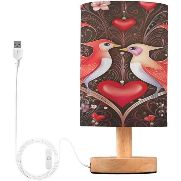 Lampe De Table Oiseau Et Cœur Pour La Saint-Valentin, Lampes De Chevet Avec Abat-Jour En Tissu