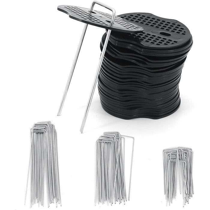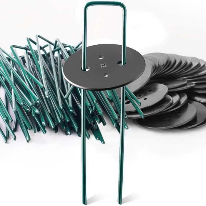 Noir Matériau : acier zinc + polypropylène., Contenu : Fonctions : 1., Idéal pour les sols assez durs et compacts., 2., Ils sont solides et faciles à utiliser avec un maillet en caoutchouc., hit the ground 3., Clous et rondelles en plastique de bonne qualité. Applications de jardin polyvalentes : nos piquets à membrane de mauvaises herbes deviendront les meilleurs outils de jardinage et amélioreront la fixation de votre patio, terrasse, jardin, parterre surélevé et projets d'aménagement paysager. Galvanisé et résistant à la rouille : le processus de galvanisation crée un puissant revêtement de zinc qui protège les piquets de la corrosion et empêche la formation de rouille. LOOK-Lot de 50 piquets de Fixation en Acier pour bâche Anti-Mauvaises Fixation ferme : fabriqués en acier de haute qualité, ces piquets de jardin en forme de U offrent une excellente tension et tiennent dans le sol. Les joints à... Piquets De Fixation Pour Bache 100 Piquets De Fixation En Acier Vert 50 Rondelles Jadin Toile De Pillage Gazon Synthétique Piquet De Fixation Jardin C'est votre solution complète pour lutter contre les mauvaises herbes et diverses tâches de jardin. Retrait sans effort : le maillet est équipé d'un crochet astucieux à l'extrémité opposée, offrant un retrait sans effort. Facile à installer : ces piquets en acier robuste ont des extrémités pointues, ce qui les rend insérés plus rapidement et plus profondément dans le sol, de sorte que vous pouvez les utiliser pour plusieurs besoins extérieurs et projets d'aménagement paysager. Cette remarquable couche protectrice améliore non seulement leur longévité, mais assure également leur durabilité dans des conditions extérieures difficiles. Parfait pour fixer du gazon artificiel ou synthétique.