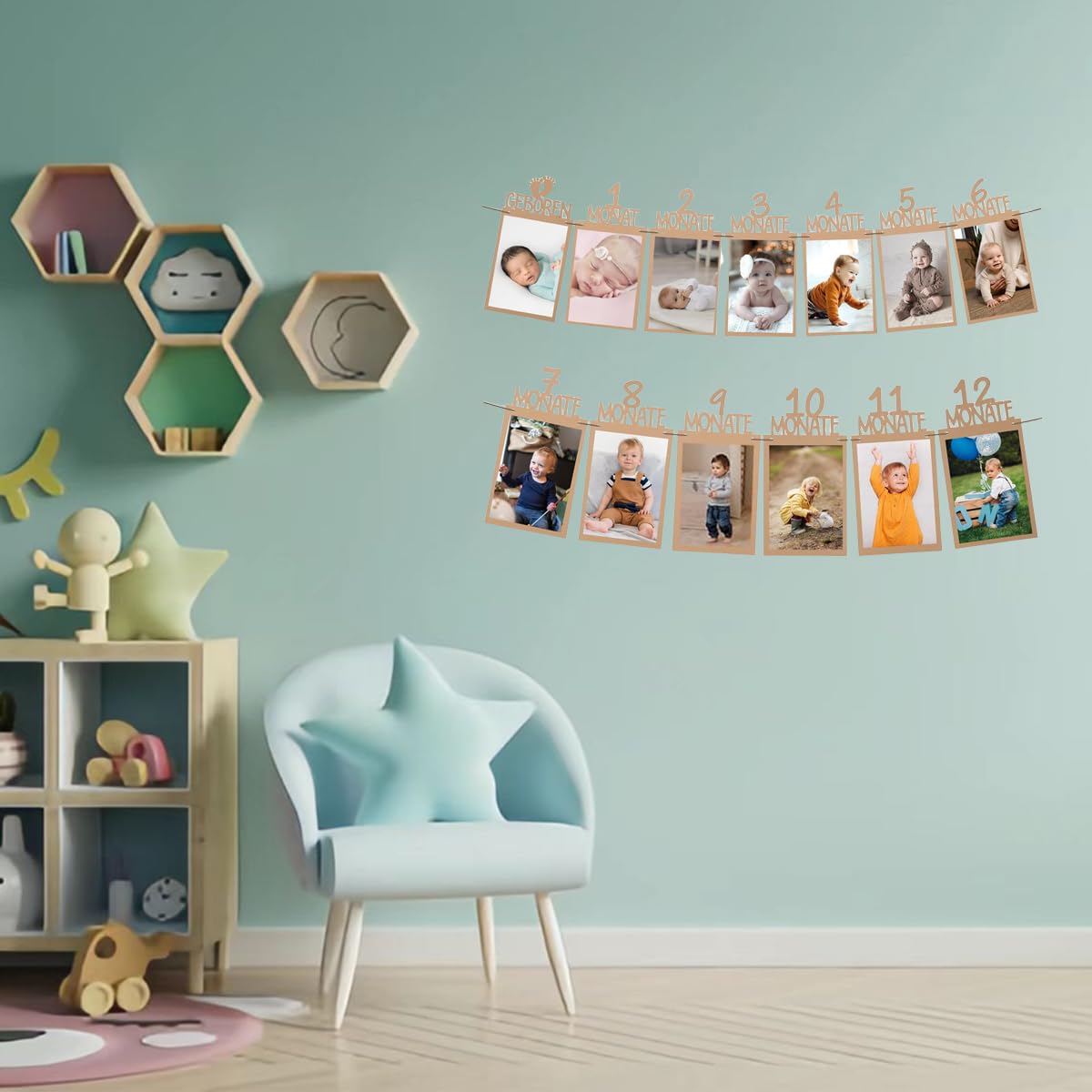 Description du produit Bannière photo 1., Anniversaire (Kaki) Bannière photo 1., Anniversaire (Kaki) Il y a 2 trous dans la carte en papier, utilisez des pastilles adhésives pour coller la photo sur la carte, enfilez une ficelle à travers les trous pour l'accrocher., Bannière photo 1., Anniversaire Bannière photo 1., Anniversaire (Kaki) La bannière photo contient 13 cartes avec des lettres de 1 à 12 mois, 6 m de ficelle, 1 aiguille en plastique et 60 pastilles adhésives double face. Une jolie façon d'afficher la croissance de bébé 1ère année mois par mois. Les bords sont soigneusement coupés, la finition est bonne, les lettres sont claires et faciles à distinguer, la combinaison des deux, accrochée au mur, une guirlande de fête d'anniversaire parfaite est prête. Goodman-1er anniversaire banderole guirlande bébé banderole photo bébé... BANDEROLE,Mermaid banner--Guirlande de bannière sirène à paillettes 3m... Banderole Anniversaire Dessin Décoration Baptême Mariage Guirlande Photo Anniversaire Bébé 1 An - 12 Mois Avec Ruban - Déco Fête Bleu Déco 1 An Bébé Décoration Anniversaire 1 An La guirlande photo et la bannière d'anniversaire sont fabriquées en papier kraft épais, respectueux de l'environnement et sans danger. Bannière Anniversaire 1 An Banderole Photo Bébé 0-12 Mois Célébrez les jalons importants et suivez la croissance. Le cadre de la carte est en papier kraft vintage, durable et peut être réutilisé plusieurs fois. Il suffit d'enfoncer l'aiguille dans les deux trous des cartes, puis de fixer les photos en rentrant leurs coins dans les 4 encoches de chaque carte.