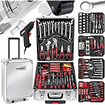 9 clés polygonales (8/9/10/11/12/13/14/15/17 mm), 1 pince universelle, 1 pince coupante, 1 pince à long bec, 1 pince multiprise à eau, 1 clé à molette Le boîtier robuste assure une longue durée de vie et des performances fiables. Boîte à outils complète : notre kit d'outils de 1031 pièces est parfait pour les artisans professionnels, les bricoleurs et les amateurs. EINFEBEN Valise à Outils 1031 Pièces Valise à Roulettes Y Compris Couteau Universel Set Doutils 55295377 Chariot a outils (10 tiroirs sur roulements à billes, verrouillable, 4... Malette Outils Complete IRONAX Aroire à Outils Sur Roues, Coffre à Outils Verrouillable à 6 Outils Mecanique Automobile 9 tournevis magnétiques, 2 tournevis à cliquet magnétiques, 3 tournevis entièrement isolés, tournevis à cliquet, 6 tournevis de précision, jeu de 48 embouts cruciforme, fente, denture multiple, 16 clés Allen, porte-embout magnétique, testeur de pression, testeur électrique Dimensions : 52 x 35 x 20 cm (L x l x H) | Poids : 13 kg Pratique : dans une boîte à outils professionnelle, l'ensemble de l'outil est clairement disposé sur quatre niveaux. Il offre une large gamme d'outils adaptés à un large éventail de tâches, du montage de meubles aux réparations et rénovations aux travaux de voitures ou de motos. FACILE À TRANSPORTER : la mallette à outils dispose d'une poignée extensible et de roulettes robustes, ce qui permet un transport confortable.