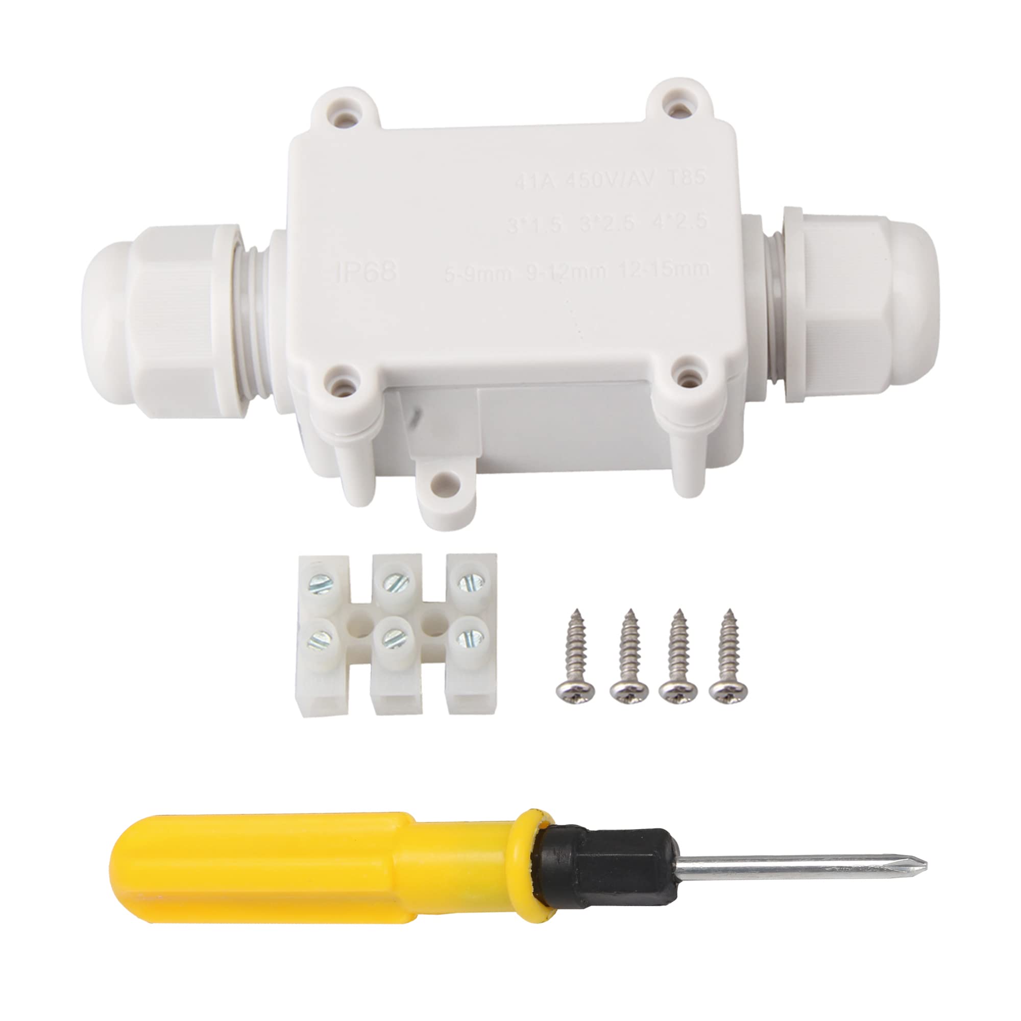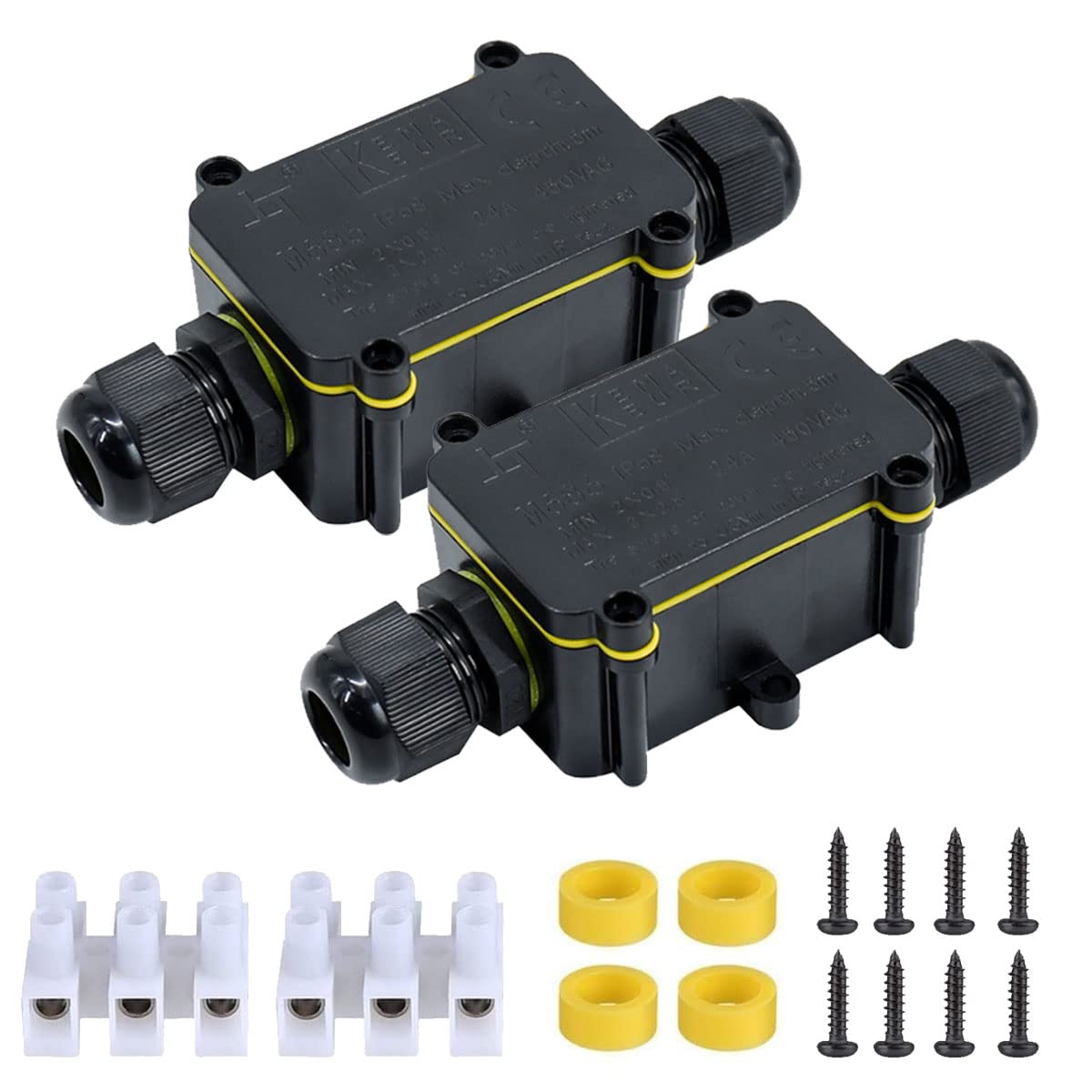 Boîte de haute qualité : matériau PC imperméable ignifuge de qualité supérieure, résistant au feu, à la poussière et aux chocs. Ip68 Boite De Jonction Casoter Boîte De Jonction Extérieure étanche IP68 à 2 Voies - Coffret Connecteur Ip68 2 Voies Prend en charge les câbles de 4 à 8 mm et 6 à 11 mm. Casoter Boîte de jonction extérieure 2 voies IP68 étanche avec 2 bornes à 3 broches 4-8 mm et 6-11 mm Contenu : 1 boîte de dérivation ; 2 bornes à 3 broches ; 2 anneaux étanches de 4-8 mm ; 2 anneaux étanches de 6-11 mm ; 4 vis. Boîtier de raccordement étanche 3 voies IP68 ARLUX - 500213 Il peut être installé à l'extérieur et à l'intérieur, tels que les murs, jardins, cours, chemins, terrasses, routes, piscines, étangs, balcons, maisons, etc. Contenu : 1 boîte de dérivation ; 2 bornes à 3 broches ; 2 anneaux étanches de 4-8 mm ; 2 anneaux étanches de 6-11 mm ; 4 vis. EJ.life Boîte de Jonction IP68 Étanche Boîtier Électrique Terminal de... La tension nominale est de 450 V CA et le courant nominal est de 24 A. Les anneaux en caoutchouc étanches sont conçus pour une protection IP68 contre l'eau., Profondeur maximale : 5 m. 4 Pièces Boîte de Jonction étanche IP66, Boite de Derivation Etanche Exterieur, Connecteur de Câble 2 Voies Connexions PG9 pour Câble 3-8mm 6mm-10mm Convient pour différents fils – Équipé de 2 ensembles de différentes tailles d'anneaux étanches en caoutchouc, convient à tous les types de fils. Également largement utilisé dans l'ingénierie sous-marine, l'ingénierie souterraine et divers domaines industriels. Utilisations : convient pour les installations électriques, les câbles extérieurs et les réparations de câbles ou les rallonges. Prend en charge les câbles de 4–8 mm et 6–11 mm, vous pouvez changer vous-même pour adapter différents fils pour empêcher l'eau d'entrer. Avec cercle d'étanchéité en caoutchouc étanche et vis d'étanchéité.