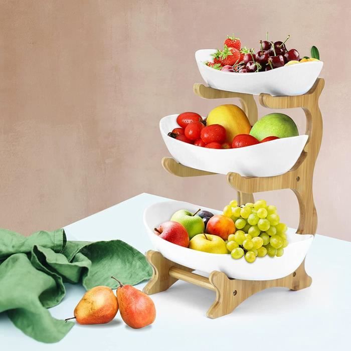 MALACASA Plats en céramique est recouverte d'une glaçure de qualité supérieure et cuite à haute température, ce qui la rend très résistante et durable pour le four à micro-ondes et le lave-vaisselle. Corbeille à fruits à 2 étages corbeille à fruits avec porte-banane corbeille a fruits 3 etages - Grande panier a fruits a etages en étal décoration plan de... Gain de Place : La corbeille à fruits maximise l'espace vertical, ajoutant de la hauteur à votre étalage tout en présentant les aliments de manière organisée et attrayante. Conception à Plusieurs Niveaux: Non seulement ces bols sont parfaits pour servir de la nourriture, mais chacun d'entre eux est le plat parfait pour contenir et présenter d'autres articles comme des bijoux, des serviettes, des outils ou des fournitures de fête. la surface lisse facilite le nettoyage, il est recommandé de l'utiliser dans le lave-vaisselle. Elles sont totalement exemptes de substances dangereuses pour les aliments afin de garantir la sécurité alimentaire. Les bols peuvent être empilés pour un rangement facile lorsqu'ils ne sont pas utilisés. Cadeau Idéal pour les Amis et la Famille Cet ensemble de bols de service trois pièces contient 2 bols de tailles différentes : 17., 8 cm, 25., 4 cm. Les dimensions des trois assiettes sont d'environ 24,5 cm, 20,5 cm et 14 cm. QUALITÉ ET DURABILITÉ DE HAUTE QUALITÉ : La corbeille à fruits est fabriquée... Corbeille A Fruits MALACASA Présentoir à Fruits 2 Etages En Céramique,1800ml + 600ml Porte Corbeille à Fruits Utilisation Polyvalente : Ces bols de service en céramique blanche peut être utilisé comme rangement pour fruits et légumes dans la cuisine, pour des chips et des sauces, ou même comme support pour des cupcakes ou des desserts.