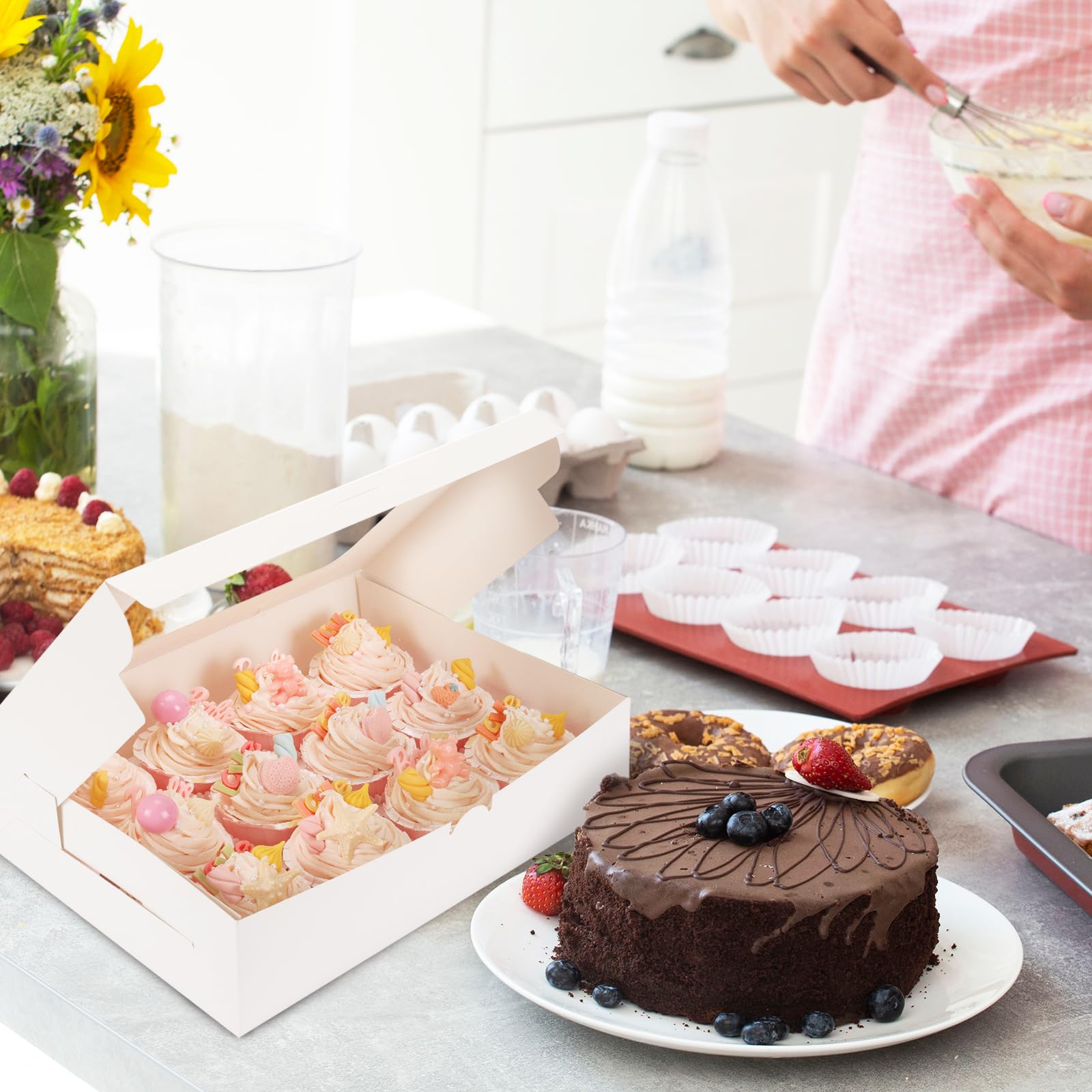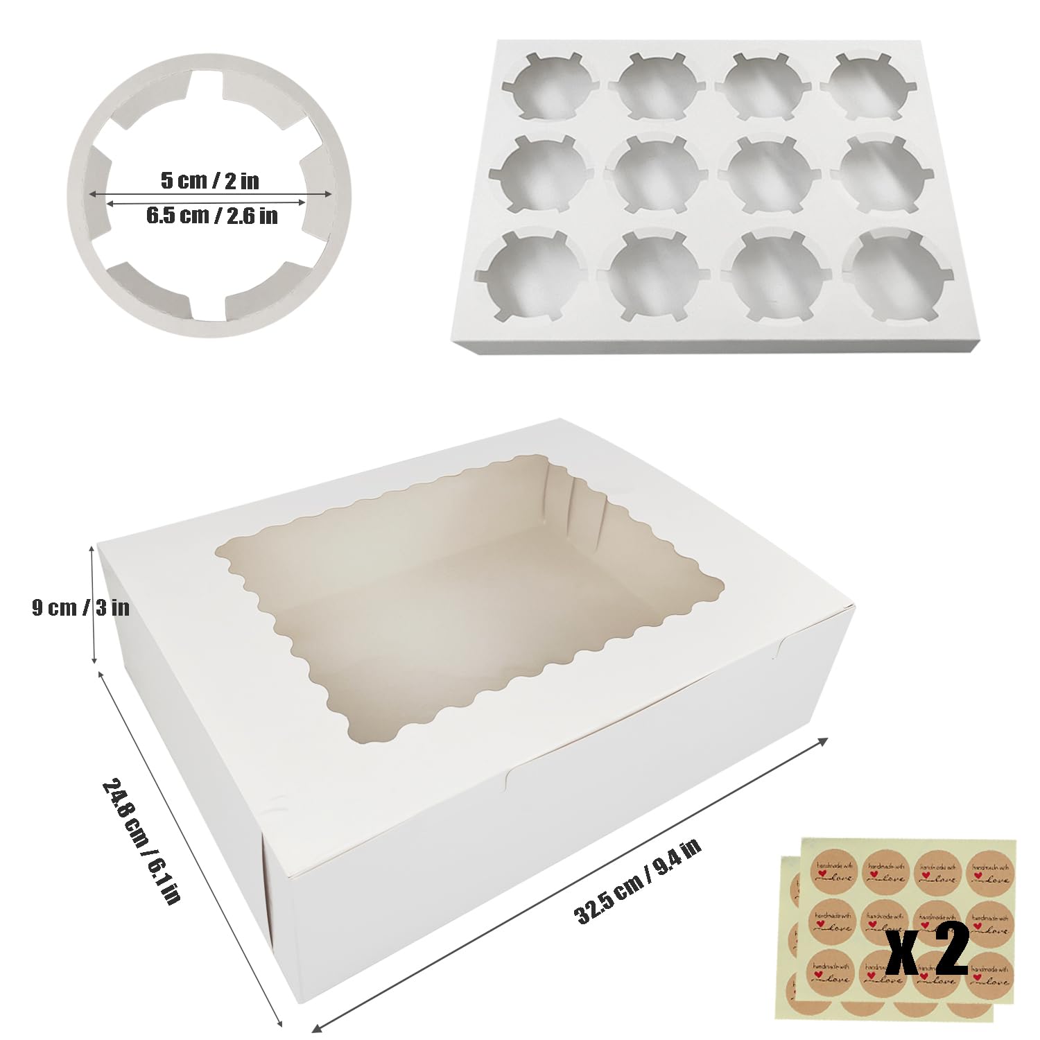 Que vous partagiez ou vendiez des gâteaux, des muffins ou d'autres produits de boulangerie, ces boîtes à cupcakes vous offrent une solution d'emballage sûre et fiable. Set includes 20 cupcake boxes and 20 cardboard inserts · Assembled cupcake box measures 13 x 10 x 3.5 inches · Made of high-quality Kraft cardboard with clear PVC... Ce sont des produits de grande valeur. Boite Emballage Carton Avec Fenetre Aglahome Lot De 15 Boîtes à Cupcakes Standard En Kraft De Qualité Alimentaire Pour 12 Cupcakes Marron Cookie Box La boîte à cupcake assemblée mesure 33 x 25,4 x 8,9 cm. oretoes Paquete de 25 recipientes para cupcakes con 300 forros para... Lot de 15 boîtes à cupcakes individuelles avec fenêtre et insert - Boîtes à cupcakes individuelles - Marron - 8,9 x 8,9 x 8,9 cm - Pré-assemblées Lot abordable – Le lot contient 20 boîtes à cupcakes et 20 inserts en carton. Si vous aimez nos produits, ajoutez simplement à votre panier.
