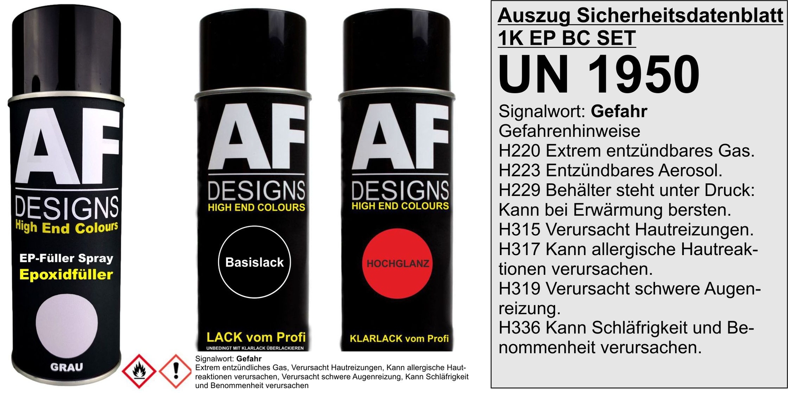 Alex Flittner Designs Spray de couleur de base + 400ml Spray vernis transparent Vous recevez un set de bombes aérosols de peinture de base avec des propriétés de séchage rapide, une adhérence extrêmement bonne et une très haute précision des teintes Certaines teintes nécessitent une sous-couche - celle-ci n'est pas incluse (teintes Candy, nacres blanches, etc., ) Peinture Voiture MERCEDES 590 FEUEROPAL Opaque Marque. Alex Flittner Designs ; Type de finition. Lisse ; Taille. 3.2 ml (Lot de 250) ; Volume de l'article. 800 Millilitres ; Caractéristique spéciale. Éclat Bombe Aérosol Compatible Avec Mercedes/Daimler Benz 590 Nous faisons confiance à une production allemande et garantissons une peinture - Made in Germany.