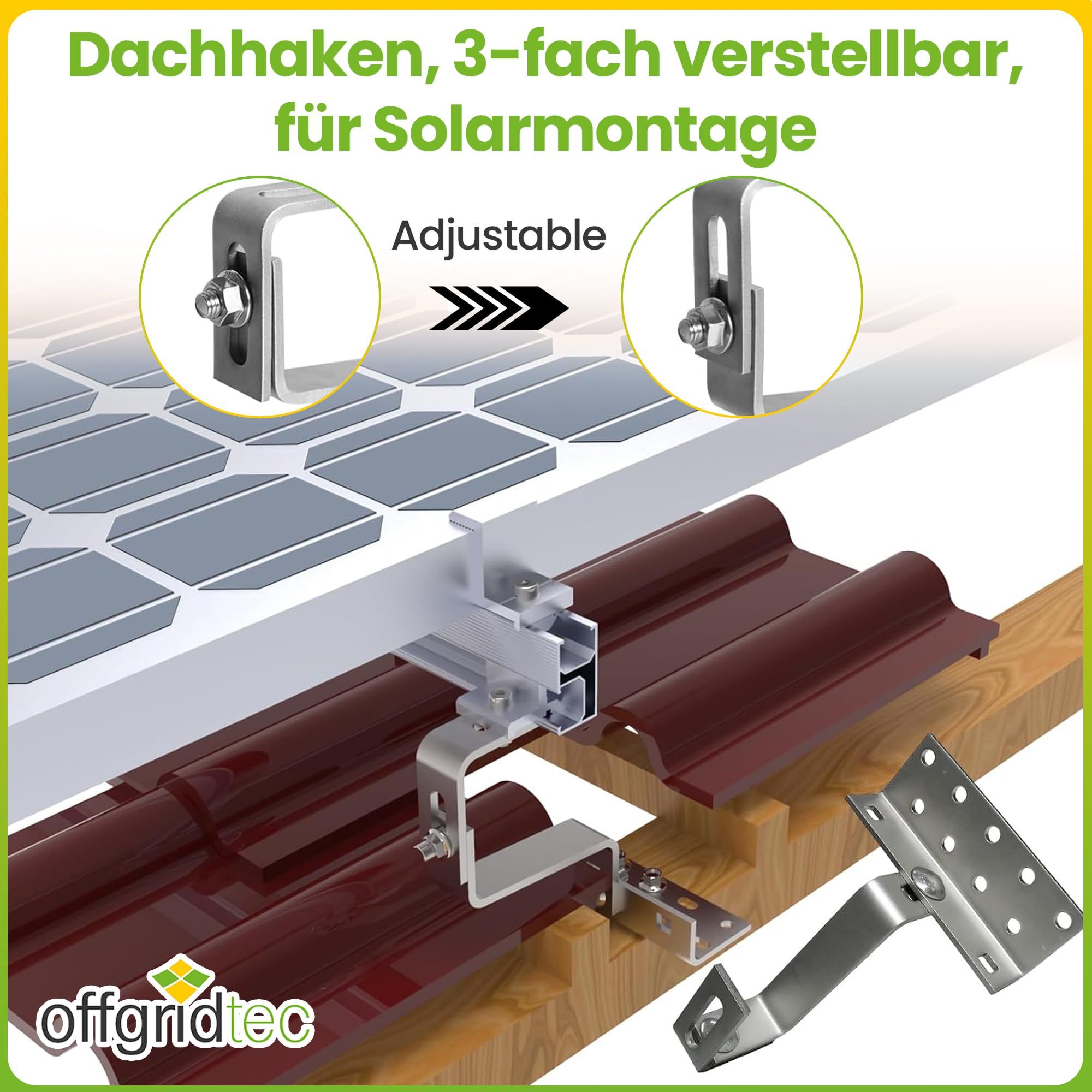 Comprend 16 vis en acier inoxydable (M6 x 16 mm) avec écrous à ailettes, anneaux à ressort et rondelles pour une fixation sûre au cadre du panneau solaire. Fixation économique pour panneaux solaires Si nécessaire, utilisez un arrêt de profondeur lors du perçage pour ne pas endommager l'arrière du panneau solaire. Kit De Supports En Z Pour Panneaux Solaires – Aluminium Et FindTheDeal : découvrez sans effort les offres de shopping sur FindTheDeal. Support Z pour montage solaire, bloc de pression en alliage d'aluminium... Remarque de montage : Vous devrez peut-être percer 4 trous sur le cadre de votre panneau solaire pour fixer le module au support. SUPPORTS DE MONTAGE de Panneau Solaire, Support Z de Montage de Panneau... Idéal pour les toits de maisons de jardin, de vacances, etc., Nombre d'articles : 1 Contenu de la livraison : 4 supports Z en aluminium (38 mm), 4 écrous à ailettes en acier inoxydable A2, vis M6 x 16 mm A2, anneaux ressort et rondelles. Kit Support Panneaux Solaires Toit Plat - 6 Rails Alu + Pinces - Pour