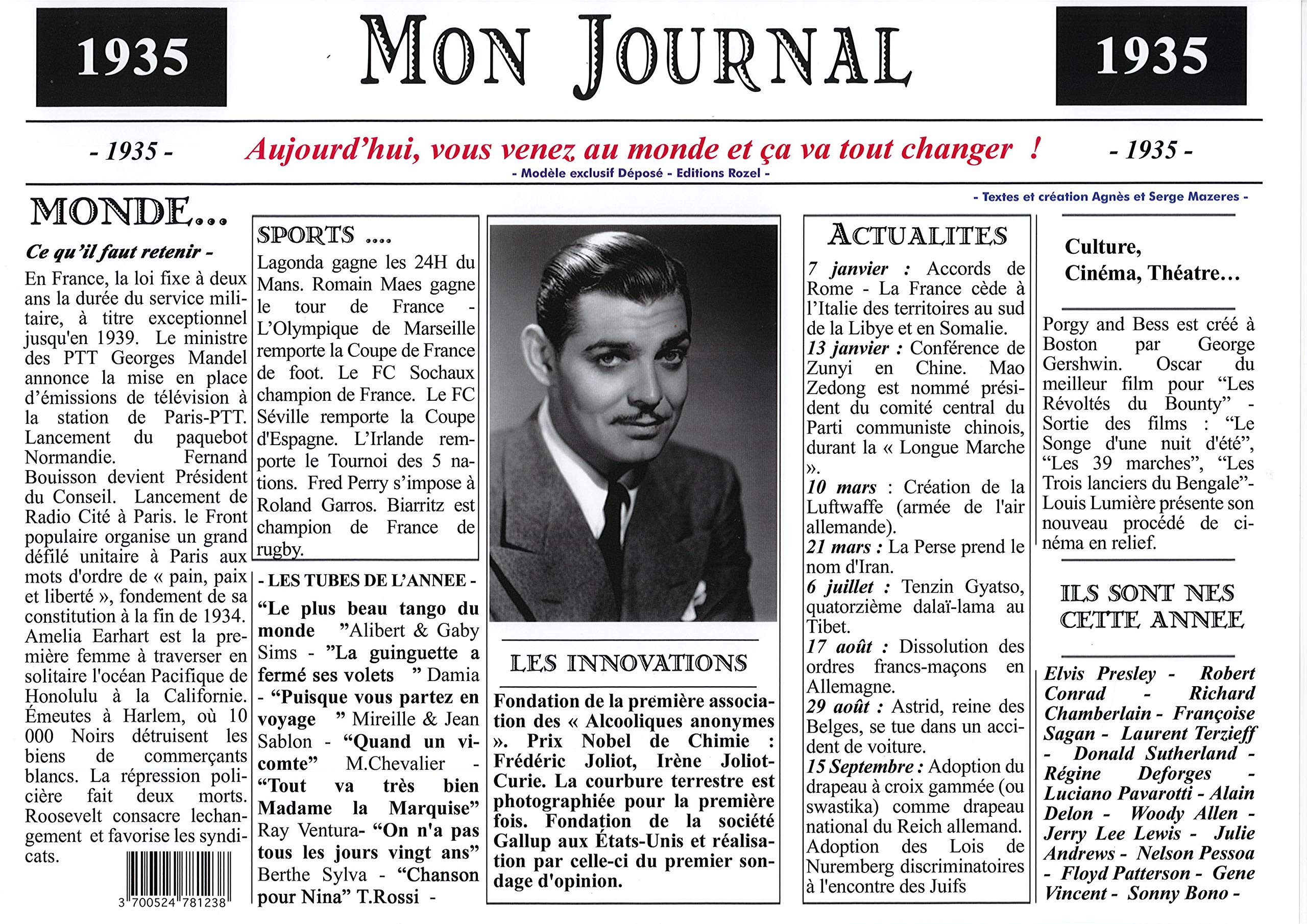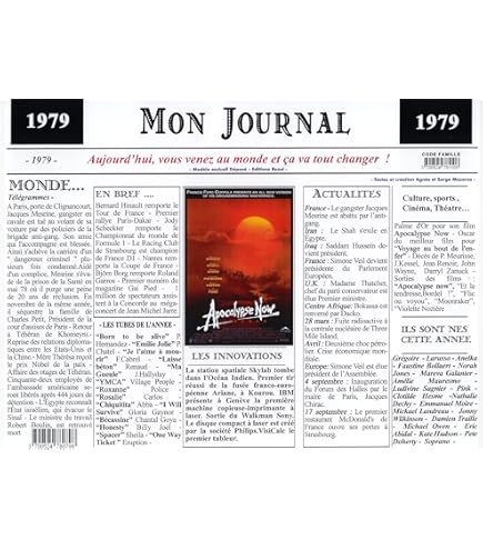 LES FAITS MARQUANTS, LES TUBES, LES PERSONNALITÉS NÉES CETTE ANNÉE LÀ, CELLES QUI NOUS ONT QUITTÉES, LES SPORTS, LE CINÉMA., ., ., Article original à s'offrir ou à offrir à vos proches. Avec ce set de table personnalisé : Surprenez vos invités ! Pour vos repas de famille ou entres amis, chacun son set personnalisé. Set De Table Journal Générique Set De Table Année 1940 - Mon Journal - Plastifié - Année De Journal De Naissance Faits marquants, musique, people. Générique Set de Table année 1994 - Mon Journal - plastifié - Année de Naissance ou Anniversaire - Idéal pour Cadeau. Générique. Add favourite. fr €5.99... Journal de naissance de l'année 1994