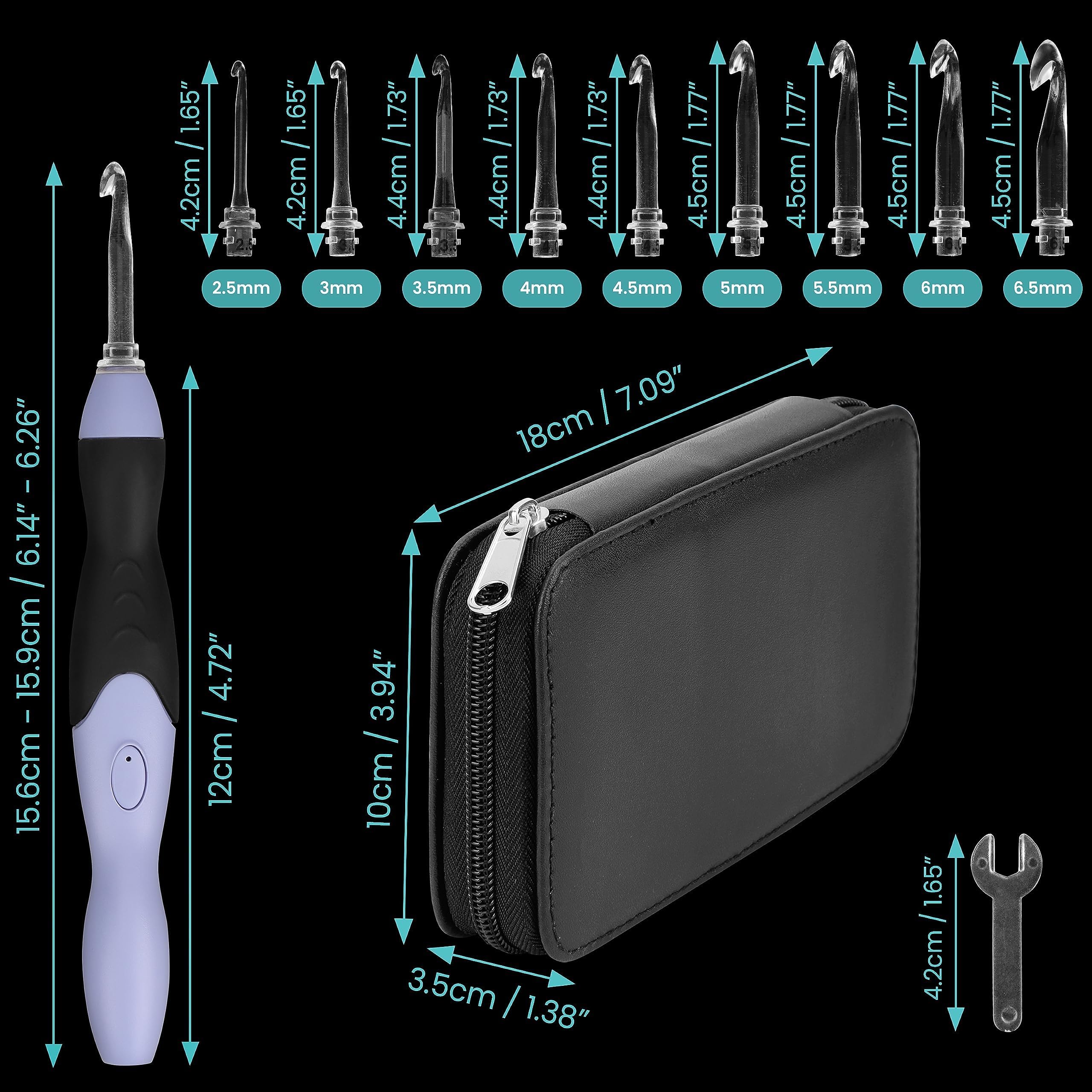 Têtes 11 en 1 et poignée ergonomique : les crochets lumineux contiennent 11 têtes interchangeables en 1 marquées avec des tailles de crochet de 2,5 mm à 8 mm, 2 tailles de plus (7 mm et 8 mm) qu'auparavant. Étui à crochet : les crochets lumineux sont livrés avec un étui de voyage résistant à l'eau avec des fentes clairement étiquetées pour vos 11 crochets et agissent comme un sac de rangement pour des accessoires de crochet supplémentaires, nos clients adorent notre produit à des fins de voyage. Lot de 11 crochets lumineux avec étui et têtes interchangeables de 2,5 mm à 8 mm - Rechargeable par USB - Avec poignées ergonomiques pour le crochet et le tricot Matériau: ABS silicone Couleur du boîtier: rouge, rose Longueur de tête: 4.5cm Longueur du câble USB: 89cm Longueur de poignée: 12cm Alimentation: batterie au... L'adorable étui garde tout organisé, pratique à emporter en voyage. Luminaire Plafond Kit Crochets Lumineux LED | La Mercerie Crochet Lumineux Avec Lumière Intégrée Les crochets avec poignées ergonomiques facilitent la pression de la main. Charge rapide et portable : charge rapide en 15 minutes, longue durée de 7 à 9 heures. Vous pouvez crocheter plus longtemps sans douleur. Sac de rangement : la boîte de rangement dispose de 9 endroits individuels pour ranger ces aiguilles à crochet, et le tissu est confortable mais durable, avec des motifs attrayants et délicats sur la surface, peut non seulement ranger soigneusement vos crochets sans mélanger, empêcher les crochets d'être perdus, rendre votre maison...