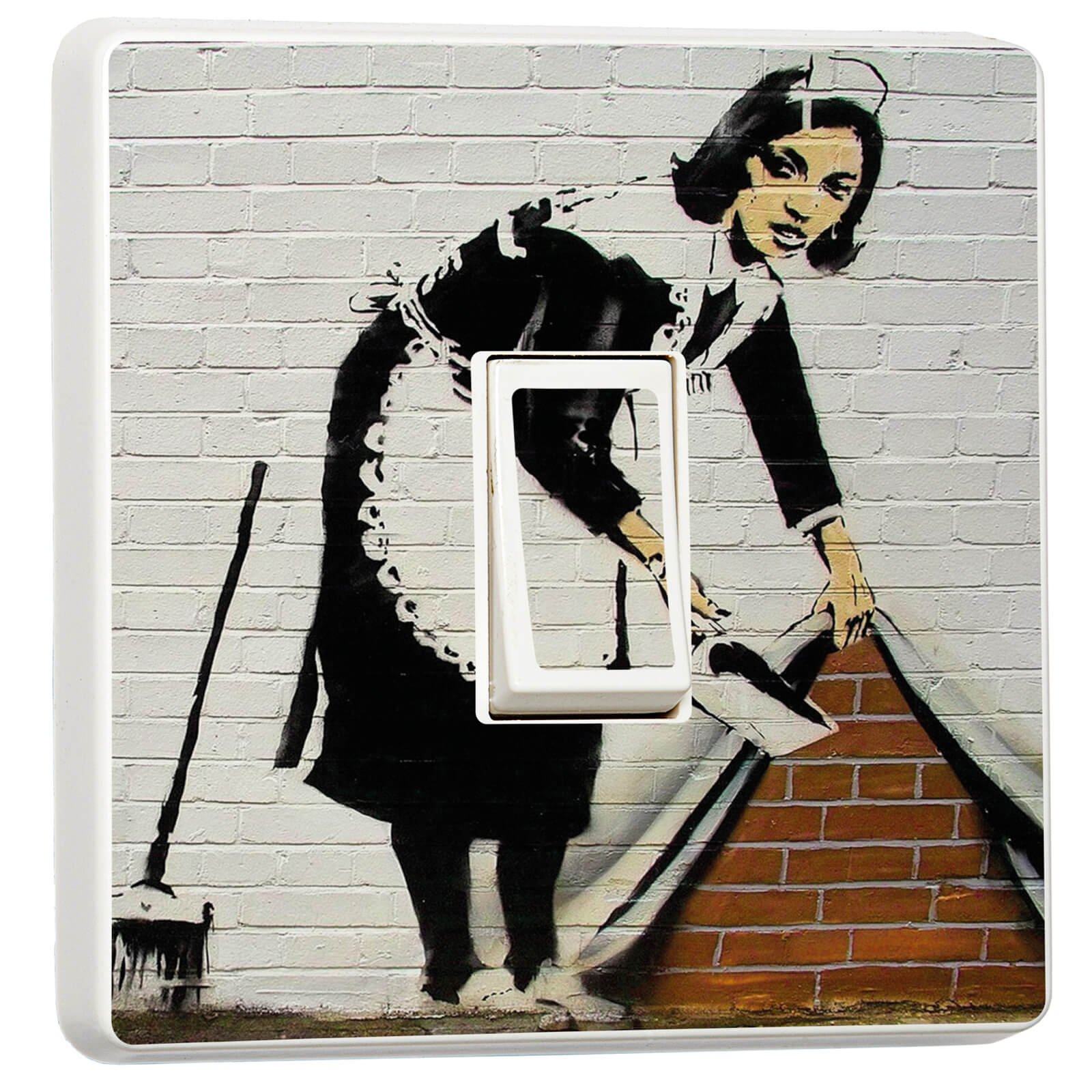 Banksy English Maid Ou Balayer Sous Le Tapis Maid 2006 Art Par Banksy... Créé à l'origine par le célèbre artiste de rue sur Waterloo Bridge à Londres, ce design est devenu un symbole d'espoir et d'amour partout dans le monde. Imprimé sur du vinyle autocollant blanc, cet autocollant est imperméable, durable et durable. JINTANG Lot de 3 caches de plaque d'interrupteur, 8,6 c, cadre d Lot De 2 Stickers Pour Interrupteur Banksy Maid – Couverture Vinyle Graffiti Pour Interrupteur Simple, Décoration D'intérieur - France Vérifiez soigneusement les dimensions avant d'acheter pour garantir un bon ajustement. Imprimé avec des encres sans solvant de haute qualité sur du vinyle autocollant de marque, assurant durabilité et durabilité. S'adapte à la plupart des interrupteurs simples (mais pas tous), ajoutant une touche unique à votre décoration d'intérieur. Veuillez noter que même si cet autocollant est conçu pour s'adapter à la plupart des caches d'interrupteurs, il peut ne pas être compatible avec toutes les tailles et formes. S'il est sale, il suffit de l'essuyer avec un chiffon humide pour garder son aspect frais. ADHESIF BANKSY BUBBLES. Stickers noir adhésif échenillé et mis sous tape pour une pose rapide et facile. 600X600mm 28,00 €, 1200x1200mm... Mesurant 82 x 82 mm, c'est la taille parfaite pour la plupart des couvercles d'interrupteur simple ou double.