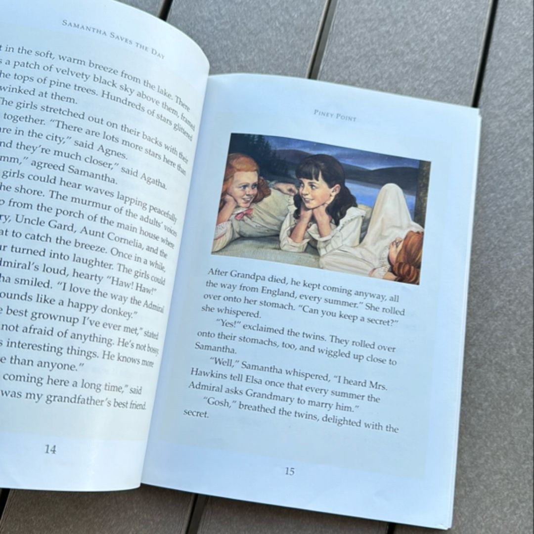 Samantha Saves the Day A Summer Story (The American Girls Collection, Book 5) by Valerie Tripp | Paperback | 1988 | Scholastic Inc. | 9780590450799 Samantha saves the day : a summer story by Tripp, Valerie, 1951- Publication date 1991 Topics Vacations, Islands, Vacations, Islands, Islands, Vacations Publisher New York, NY : Scholastic Collection internetbooks; delawarecountydistrictlibrary; americana; inlibrary; printdisabled Contributor Internet Language English Item Size... Librarika: Samantha Saves The Day: A Summer Story (American Girl Samantha Saves the Day is book five in a series of books. In this story the mail character Samantha and her family are on their annual summer vacation at Goose Lake. Samantha and her cousins, Agnes and Agatha, were enjoying their summer trip until one day when a bad storm came and they were forced to stay inside the house and became very bored