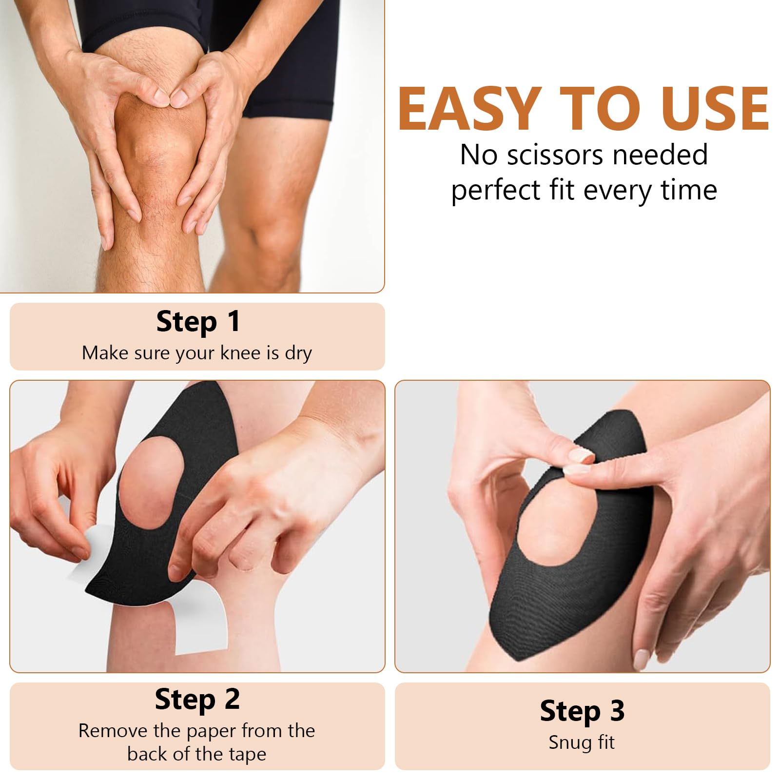 Lot de 12 bandes de kinésiologie prédécoupées pour genoux - Imperméables - Prédécoupées - Pour la stabilité du genou Description du produit : Couleur : noir., Taille : taille unique. Pendant l'utilisation, vous ne ressentirez pas de sensation de retenue, mais vous sentirez que la bande de genou est une extension naturelle de vos muscles. Que ce soit pour prévenir les blessures sportives ou la fatigue musculaire dans la vie quotidienne, la bande de kinésiologie pour les genoux peut obtenir d'excellents résultats. Kinesiology Tape - Lot de 5 rouleaux de ruban de kinésiologie thérapeutique et élastique pour Pas de coupe : notre bande de kinésiologie pour genoux dispose d'un design sans coupure qui est prêt à l'emploi sans étapes supplémentaires. Lot De 12 Bandes De Kinésiologie Pour Genoux, Imperméables Matériau : coton, élasthanne, papier support Contenu de la livraison : 12 bandes de kinésiologie pour genou., Fonctionnalités: 1., La bande de kinésiologie pour genou est une forme prédécoupée spécialement conçue pour le genou, qui s'adapte parfaitement au contour de l'articulation du genou et offre un maintien et une protection complètes., 2., La bande prédécoupée est fabriquée en tissu élastique de qualité supérieure et dispose d'excellentes propriétés de résistance à la traction et de récupération et peut s'adapter aux changements dynamiques de l'articulation du genou dans différentes conditions sportives., 3., Pré-découpé à la taille du genou, pas besoin de mesurer et de couper, il suffit de décoller et de coller, ce qui permet d'économiser considérablement le temps de préparation. Que ce soit à la salle de sport ou lors de sports nautiques, cette bande de genou prédécoupée reste en place et résiste à la sueur, à l'humidité et à l'eau. La bande de kinésiologie pour genou offre un excellent soutien à votre genou, minimise le risque de blessure pendant le sport et aide. Imperméable et respirant: Les bandes de kinésiologie prédécoupées sont imperméables et résistantes à la transpiration, ce qui permet une adhérence forte et...