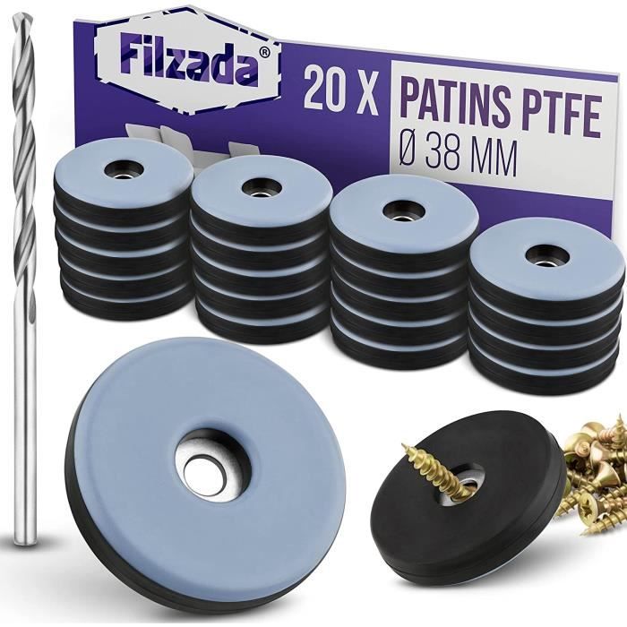 RÉDUCTION DU BRUIT: grâce aux patins en téflon, les meubles peuvent être déplacés très silencieusement, ce qui est parfait pour les chaises et les pieds de meubles RÉDUCTION DU BRUIT: grâce aux patins en téflon, les meubles peuvent être déplacés très silencieusement, ce qui est parfait pour les chaises et les pieds de meubles CARACTÉRISTIQUES DU PRODUIT: 20 pièces - Ø 38 mm rond - Pour l'assortiment complet des patins en feutre Filzada, recherchez Patins en feutre Filzada Lot De 20 Patins En Téflon De 25 Mm Avec Vis Pour Un Déplacement Facile Sur La Moquette Et Le Patins en téflon pour chaise, table, fauteuil / canapé, tabouret de bar, etc. NE TENUE STABLE grâce à la vis, convient également aux sols comportant de nombreux joints Patins professionnels pour meubles en à monter sur la chaise / le... Patin Chaise Carré Filzada® 26x Patins Pour Meubles Téflon Avec Vis - 25 X 25 Mm (carré) - PTFE Patins Pour Meubles/Planeur PTFE (Teflon) Avec Vis Pied De Meuble POUR TOUS LES REVÊTEMENTS DE SOL: Comme protection des sols pour les stratifiés, les carreaux, le marbre, le vinyle, le PVC, le liège, la pierre naturelle, les tapis, les dalles, les sols en pierre, les pavés HAUTE LOADABILITÉ: convient également aux meubles lourds.