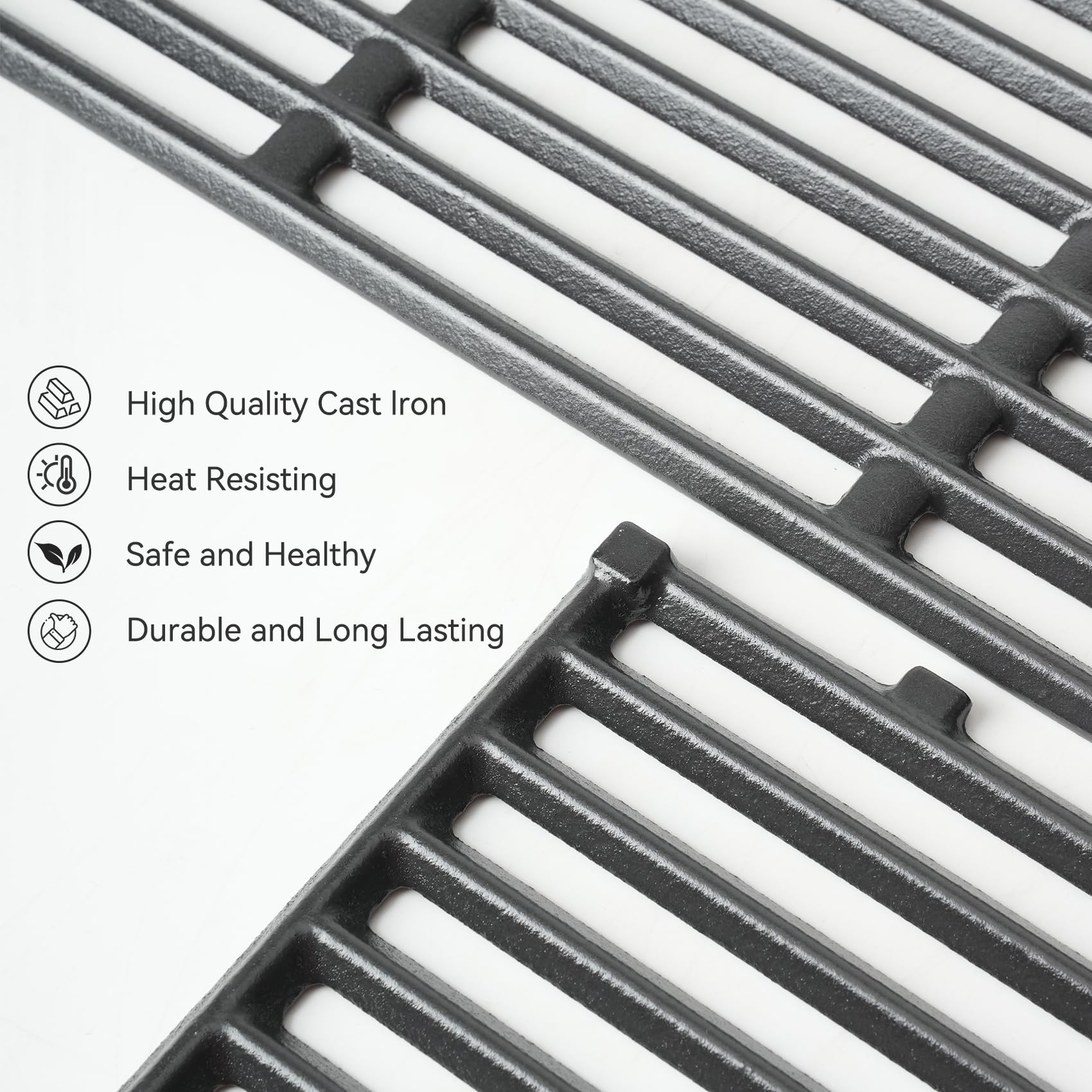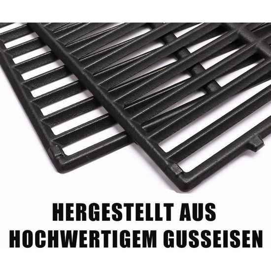 Facile à nettoyer : la surface des grilles de barbecue 7638 est antiadhésive, facile à nettoyer, et le bord lisse ne blessera pas vos mains. Description Redonne vie à ton barbecue Weber avec ces grilles en fonte ! Compatibles Spirit 300, Genesis 1000-3500 et autres modèles. Dimensions 44,5 x 30,3 cm chaque. La fonte chauffe uniformément et donne de belles marques de grillade. Pour durer longtemps, nettoie-les après chaque use et huile-les régulièrement. Le must pour les... Lot de 2 grilles de cuisson pour barbecue à gaz Weber Q100 Q120 Q140 Bonne rétention de la chaleur : les grilles en fonte sont non seulement parfaites pour retenir la chaleur et cuire les aliments rapidement, mais laissent également des marques de barbecue professionnelles, laissant les aliments croustillants et juteux, conduisant à une expérience de barbecue extraordinaire. Grille Grilles Cuisson Marquage Grilles Barbecue Fonte 44.5cm - Compatible Weber Spirit 300 - Lot De 2 - Marques De Grill Parfaites Plancha Pour Barbecue Weber Weber Spirit E310 Les grilles s'adaptent parfaitement à votre barbecue Weber. Durable, durable et facile à nettoyer, capable de donner des marques de saisie importantes à la viande/légumes. Contenu : lot de 2 grilles de barbecue ; dimensions Grilles de rechange pour Weber 7638 S'adapte parfaitement — identique à la pièce d'origine # 7638., Grille de cuisson de rechange pour tous les barbecues à gaz Spirit série 300, tels que E/S-310, E/S-320, E/S-315, E/S-330 et 700., Dimensions du produit : 44,5 x 30,2 cm chacun, 44,5 x 60,5 cm au total, 2 paquets.