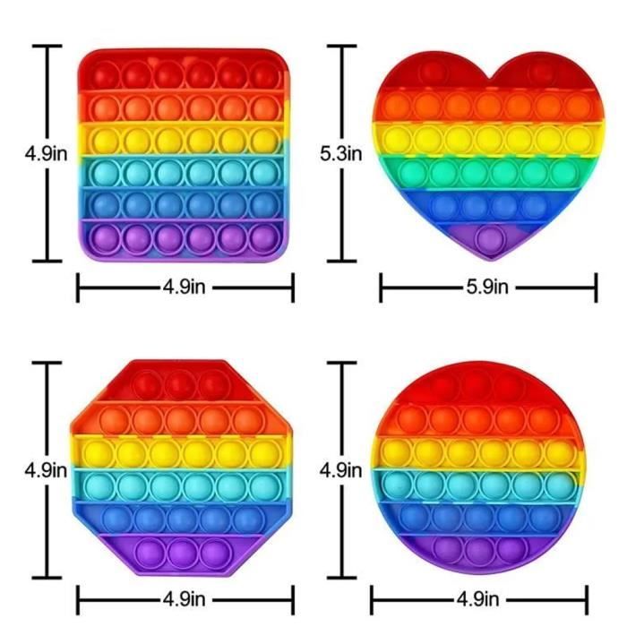 - Ce jouet anti-stress à pousser peut être joué par plusieurs personnes en même temps. Le jouet de puzzle sensoriel pop it bubble encourage la reconnaissance des mots et des couleurs des enfants ainsi que la créativité et la concentration. En jouant avec les bulles, il favorise la créativité et la concentration et procure un sentiment de satisfaction Yefun Quick Push Bubbles Jouet Popite pour Enfant, Push and Pop Description du produit - Les jouets à doigt anti-pression en silicone sont fabriqués en silicone de qualité alimentaire, inodore, non toxique et facile à nettoyer. Danger: Veuillez ne pas couper le produit avec des objets pointus tels que des clous ou des couteaux, car cela endommagerait le produit. LAPONO Pop It Fidget Toys Popit Push Bubble Poppers Silicone de Première Qualité Couleur Arc en Ciel Jouet Sensoriel pour Soulager Le Stress d'adulte Enfant... ▶Soulagement du stress : Le presser jeux peut exercer le pouvoir cérébral, soulager la fatigue et éliminer l'anxiété, adapté à tous les types de personnes, en particulier pour les adultes qui ont besoin de soulager l'anxiété et le stress ▶Matériau de haute qualité : Pop it fidget toys fabriqué en silicone alimentaire de haute qualité, sûr, inoffensif, doux, résistant, respectueux de l'environnement, lavable et réutilisable soulager la pression: C'est un jouet anti-stress pour tous les âges. ▶Ce jouet à popit push bubble poppers utilise un schéma de couleurs arc-en-ciel passionnant avec des couleurs vives et des formes spéciales, vous pouvez l'utiliser pour travailler la reconnaissance des mots et les compétences de coloriage des enfants, ce qui en fait un excellent cadeau pour les anniversaires et les vacances Que vous soyez stressé pour un examen ou bien que vos enfants aient du mal à rester en place plus de 5 minutes, le pop it va vous aider au quotidien ! Il est idéal, car il permet de développer les capacités cognitives chez les enfants grâce aux bulles et aux couleurs Pop It Fidget Toy LAPONO s Popit Push Bubble Poppers Silicone De Première Qualité Couleur Arc En Ciel Jouet Sensoriel Pour Soulager Le Stress D'adulte Enfant Presser Jeux Octogone Avec Chiffres Push Pop Fidget Toy cadeau idéal: C'est un excellent cadeau pour les enfants, la famille et les amis, parfait pour les anniversaires, Noël et autres vacances.