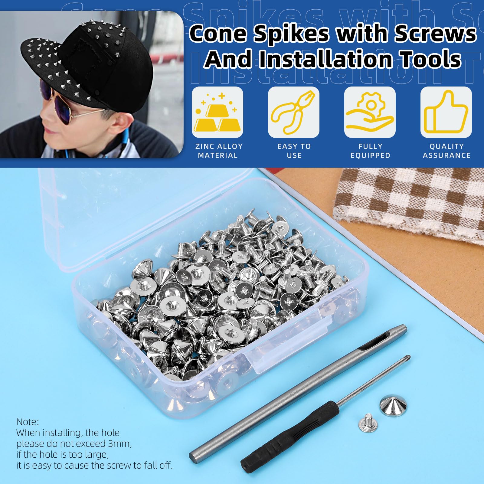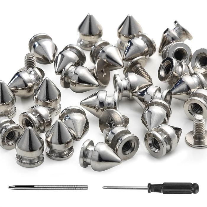 Peut libérer votre imagination et créer votre propre style punk unique. ♛ 【Matériau de haute qualité】: Les boulons à pointe conique sont fabriqués en alliage de zinc de haute qualité avec une surface nickelée, des particules claires, lisses sans bavures et sans lignes de coulée, le revêtement et la couleur sont durables. La couleur peut être différente en raison de l'affichage de l'écran ♛ 【Large application】 : nos kits de rivets à pointe conique avec vis sont l'accessoire parfait pour les sacs, chaussures, chapeaux, pantalons, pulls, vestes, colliers pour animaux de compagnie, bracelets, textiles de maison, etc. Glarks Lot de 3624 agrafes à couronne étroite de calibre 18, 4 tailles Poinçon : 99 x 2,5 mm / 3,9 x 0,1 Quantité : 202 pièces 🥇 [Caractéristiques du produit] Ces pointes coniques sont fabriquées en alliage de zinc de haute qualité et sont ensuite recouvertes dans d'autres couleurs. Le diamètre de la pointe est de 10 mm. Veuillez ne pas rendre le trou trop grand, il est facile de faire tomber la vis. Dimensions : La hauteur de la pointe est de 4,7 mm. ♛ 【Ce que vous obtenez】 : dans ce kit, vous recevrez 100 jeux de pointes et de boulons en or, y compris 100 pointes coniques de 4,7 mm, 100 vis, 1 perforateur de trou et un tournevis. La hauteur de la pointe est de 4,7 mm, le diamètre de la pointe est de 10 mm et la hauteur de la vis est de 6,6 mm. Pointes d'électrodes non-isolées 40mm - Boite de 100 pointes Ces rivets punk en métal sont tous conçus dans la bonne taille et la bonne taille, les pointes peuvent être conçues selon vos besoins dans des vêtements ou des chaussures pour créer votre propre style punk unique. Pistolet A Air Comprimé KALASO – Clous En Forme De Dôme En Résine, Rivets Rapides En Forme De Pistolet à Air Comprimé 20 Ensembles Cône Pointes Clous, 7X10Mm Clous Et Pointe Métal Vis Dos... Total : 202 pièces 🥇 [Remarque] Les mesures étant prises à la main, les tailles indiquées peuvent varier légèrement. ♛ 【Facile à utiliser】: Nous vous avons fourni un tampon et un tournevis, juste un trou et le visser. 🥇 [Produit inclus] 100 pointes coniques dorées., 100 vis dorées., 1 tournevis., 1 pièce de trou. L'opération est très simple, il suffit de faire un trou et de le visser, vous pouvez les placer n'importe où, ils seront certainement cool. Total de 202 pièces, quantité suffisante pour répondre à tous vos besoins quotidiens de décoration.