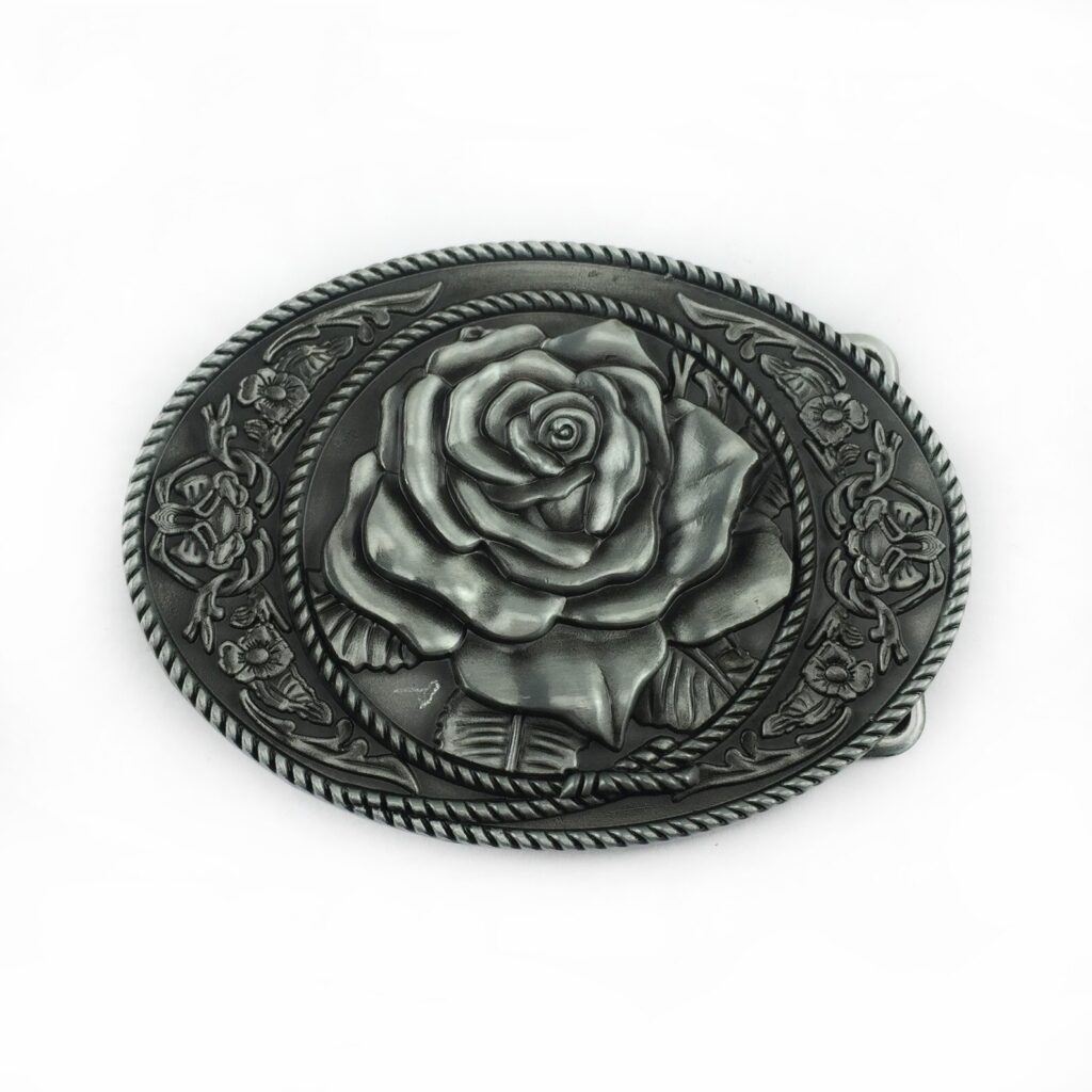 New Vintage Oval Rose Flower Western Belt Buckle Boucle de ceinture Brand New In Stock Only Buckle No Belt SKU: BUCKLE-3D059AS Material: Zinc Alloy Heavy Metal Antique Brushed Silver Color Ship to worldwide Both Safe Material and Plating by Lead Free Nickle Free Length Size is, 3., 54 inches, Height Size is, 2., 6 inches, Weight is 3., 6 oz Length Size is, 90 mm, Height Size is, 66 mm, Weight is 102 g The inner diameter for back loop is, 1., 58 inches (40 mm), fits belt up to 1., 58 inches (40 mm) Width Button Snap On Belts All of our buckles is fitting to all of our Button Snap on Belts you could please choose your favorite belt in our store, alliage de zinc, Fermeture : Buckle Western Cowgirl Buckle mit Blumen Muster, Gürtelschnalle En portant des bottes en cuir, des chapeaux de cowboy ou même des ceintures en cuir pleine fleur ornées de boucles western en métal brossé, ils peuvent affirmer leur style et l’authenticité de leur style au grand jour New Vintage Silver Plated 3D Sculpt Western Rose Flower Belt Buckle Gurtelschnalle Boucle De Ceinture New Vintage ilver Plated 3D culpt Wetern Roe Flower Belt Buckle Gurtelchnalle Boucle de...