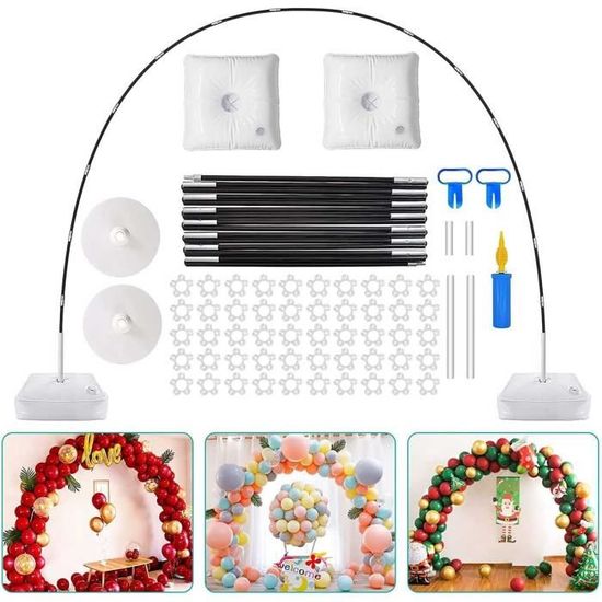 Couleur du produit : blanc, doré. Pour une décoration de fête originale et festive, optez pour une structure arche ronde de ballon PlusFive Arche de Ballon en Métal, Demi Arche Ballon 2,5m, Grand Kit d Montage et démontage faciles : conçu dans un souci de commodité, le support s'assemble rapidement sans avoir besoin d'outils, ce qui vous permet d'économiser du temps lors de la configuration de l'événement. Design flexible pour des affichages créatifs : ce support pliable pour demi-arche de ballons s'adapte sans effort à divers thèmes d'événements. Contenu de l'emballage : 1 long tuyau flexible. 1 ruban adhésif pour arche de ballons. Convient pour toutes les occasions : qu'il s'agisse d'un anniversaire, d'un anniversaire de mariage ou d'un événement d'entreprise, ce support pour demi-arche de ballons ajoute une touche élégante à toute célébration, créant une superbe toile de fond pour des photos et des souvenirs. 1 tuyau de raccordement court., 1 sac à eau., 1 base en PVC., 30 clips pour ballons., 1 pot à ballons. Contenu de l'emballage : le kit d'arche de ballons comprend 1 tuyau long pliable, 1 tuyau de connexion court, 1 sac d'eau, 1 base en PVC, 30 clips pour ballons, 1 tasse à ballons, 1 point de colle pour ballons, 1 ruban adhésif pour ballons, 1 ruban adhésif pour arche de ballons, 1 outil de fixation de ballons. Demi Arche Arche De Ballon Réutilisable - 2 M - Armature Réglable - Pour Anniversaire, Mariage, Fête (blanc Arche Ballon Anniversaire Demi Arche de Ballons Thème Dinosaure : Arches de ballons sur Sparklers... Kit Arche À Ballons - TRAHOO - Réutilisable - À Poser Au Sol - 2M De