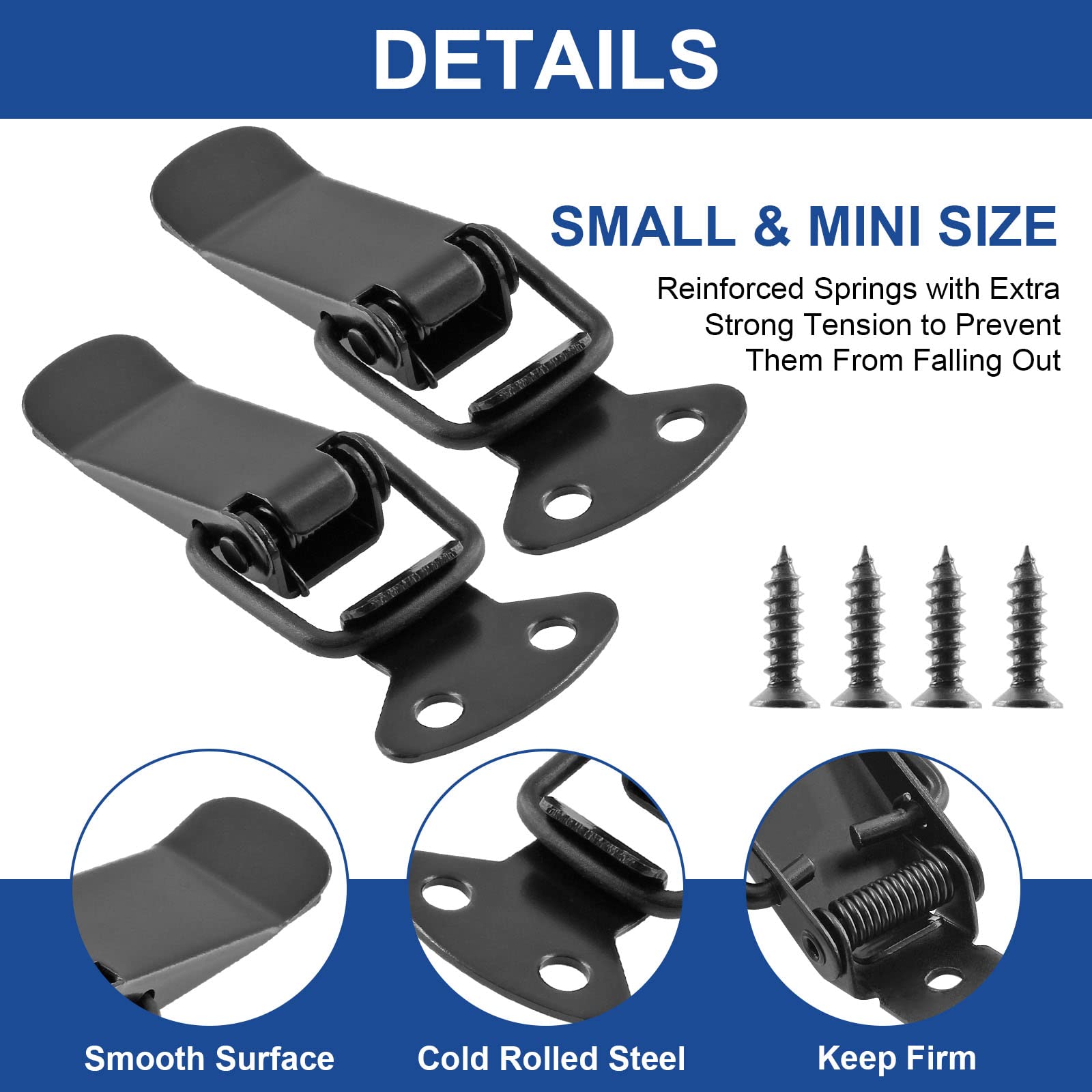 Matériau : acier doux, couleur : noir. Nombreuses utilisations : ce loquet à bascule est généralement utilisé dans une boîte à outils, un tiroir, des étuis, des coffres ou d'autres matériels. 108pcs Kit d'Outils de Nettoyage des Arme à Feu Universel avec Mallette de Transport en Aluminium Accessoires en Laiton Noir Matériau en acier inoxydable : résistant à la corrosion, robuste et durable.Facile à installer : structure simple, facile à sign : design exquis, simple et lisse.Largement utilisé : convient pour les boîtes à outils ou autres matériels.Contenu de la livraison : 4 Loquets.Remarque : les données sont toutes mesurées manuellement, veuillez permettre une erreur de 1 à 3 cm... Caractéristiques : le design à ressort et une excellente tension lui permettent de tenir fermement pendant le verrouillage, fournit une protection puissante et professionnelle là où vous avez besoin de verrouiller. Loquet à Bascule Extérieur LOT DE 4 Loquets Bascule En Acier Inoxydable Robuste Pour Armoire Et Loquet Porte A Bascule Gedimat Dimensions totales (L x l) : 72,5 x 26,8 mm. Contenu de l'emballage : 4 loquets à bascule (vis de montage incluses) Diamètre du trou de montage : environ 5 mm ; distance du trou de montage : environ 13 mm. Ce produit est composé de 4 loquets à bascule simples et pratiques, principalement fabriqués en matériaux métalliques durables, qui peuvent être utilisés pour les boîtes, boîtes, boîtes, etc. Fermoir de tension en acier inoxydable avec vis, fermoir à...
