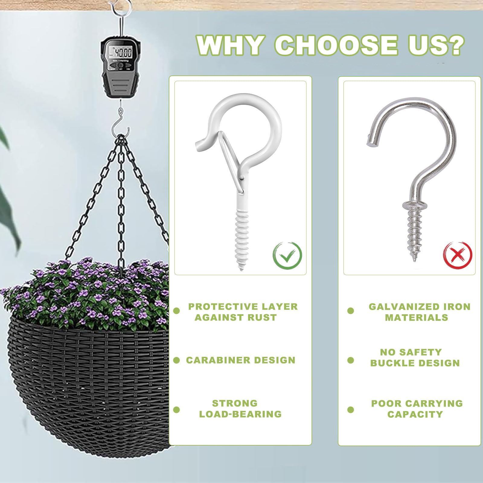 Chaque crochet à vis est livré avec un tube en plastique pour les surfaces dures telles que les cloisons sèches, la brique et plus encore. Qualité supérieure : Crochets coupe-vent pour guirlandes lumineuses extérieures, le matériau est épais et ferme, pas facile à casser, utilisé pour les lumières et autres supports de fils... 【Description】 1., Small, ne prend pas un endroit pour transporter et stocker facilement., 2., L'aspect blanc élégant est simple et pourtant à la mode et peut être harmonieusement intégré dans différents styles d'ameublement. 【Spécification】 Matériau: Acier Inoxydable Couleur: Blanc Taille: Comme Le Montre l'Image 【Le package comprend】 30 x Crochets à Vis 30 x Tube d'Épandeur 【Remarque】 1., Veuillez permettre une déviation de mesure de 1 à 2 mm en raison de la mesure manuelle., 2., En raison de la différence entre les différents moniteurs, la couleur affichée sur l'image peut différer légèrement de la couleur de l'article réel. CKS.K2 | Kit De Crochets Individuels | Servante Facom Mobilier D Et Servantes Facom Cksk2 3148517229273 Crochet Suspension Lot De 30 Crochets à Vis, Vis à Crochet, En Acier Inoxydable, Poids Lourd, Avec Boucle De Sécurité, Pour Suspendre Des Paniers De Plantes, Des Mangeoires, Des Carillons à Vent Crochet Mural A Visser Surface lisse, forte, résistant à la corrosion, sans rouille, pas facile à casser, stabilité forte, traitement exquis et peut également maintenir de bonnes performances dans des conditions difficiles et est durable. adaptées aux fils extérieurs suspendus, aux lanternes de décoration de Noël, aux lumières de contes de fées, aux cages à vent, cages à oiseaux, cordes, pots de fleurs, tasses, lampes, pots de fleurs et autres lampes. 【Application multi-scènes】Convient aux cuisines, aux chambres, aux salles de bains, aux garages, au balcon, etc. 【Conception de boucle de sécurité】 Le dispositif de boucle de sécurité spécialement équipé peut verrouiller efficacement les objets suspendus pour éviter le glissement accidentel. 【30 Pièces Crochets à Vis】 Vous obtenez 30 Pièces Crochets à Vis + 30 tuyaux en plastique, qui est économiquement et abordable et suffisant pour couvrir vos besoins quotidiens. 30 Pièces C-rochets à Vi-s, Crochets à Vis Avec Capuchon de Sécurité, Crochets à Vis en Acier Inoxydable, Crochet à visser pour Paniers de Plantes, Nichoirs à... Il est à la fois pratique et beau et souligne la beauté générale de l'environnement de vie., 3., L'interface spécialement traitée convient non seulement aux intérieurs secs, mais maintient également le vent, le soleil et la pluie à l'extérieur sans déformation ni décoloration, ce qui en fait un choix idéal pour vos besoins en gueule de bois à Indo et à l'extérieur.