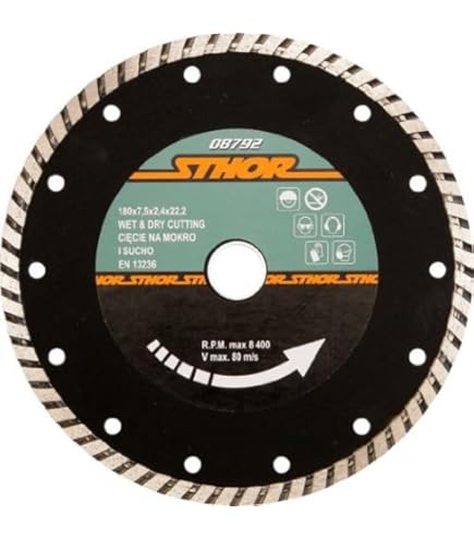 Ces produits sont fabriqués pour TopsTools. 1 disque de coupe segmenté SabreCut Lame diamant de scie circulaire multi-matériaux Evolution ø230 mm. Idéale pour les tâches de métallurgie et de maçonnerie. Lame multi-matériaux pour la coupe de métaux ferreux et non ferreux, les briques, les carrelages, le plastique grâce à son tranchant diamanté Convient pour couper une variété de matériaux de construction tels que le béton, la pierre, la brique, les tuiles, le béton armé La hauteur du segment détermine la profondeur des diamants. Avertissement De Sûreté Veuillez toujours suivre les instructions de sécurité fournies par le fabricant de votre outil électrique Clause de non-garantie Ces produits sont fabriqués pour TopsTools. Description du produit Contenu de l'emballage: 1 lame diamant segmentée SCDS230 de 230mm. Les disques à tronçonner diamant SabreCut Revolution ont été conçus en utilisant uniquement la meilleure concentration de diamant, ce qui donne des performances élevées, une durabilité et une longévité élevées Lames diamantées segmentées. SabreCut SCDT230 Lame de scie circulaire diamantée pour meuleuse d'angle Turbo 230 mm x 10 mm x 22,23 mm Compatible avec Bosch Dewalt Makita, Milwaukee et... Lames diamantées spécialement conçues pour un usage professionnel et domestique Scie Circulaire Milwaukee Scds230 Lame De Scie Circulaire Diamantée 230 Mm X Disque Beton 230 Mm Ils sont capables de couper divers matériaux durs comme la pierre, le béton et la céramique. SabreCut Revolution Lames de scie circulaire diamantées Les lames circulaires SabreCut Revolution ont été spécialement conçues pour un usage professionnel et domestique. TopsTools n'est pas affilié à Bosch, Fein, Makita, Worx ou tout autre nom de marque autre que «SabreCut» et «TopsTools». Au fur et à mesure que vous utilisez la lame, les segments de diamant s'usent donc plus la hauteur du segment est grande, plus les diamants sont élevés, gardant la lame plus aiguisée plus longtemps. Accessoires Proxxon : Lame à tronçonner pour KS 230 - New CAP Maquettes