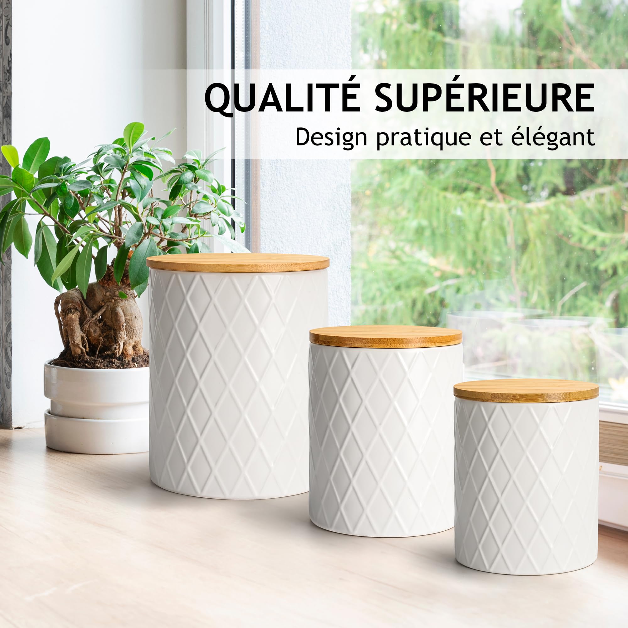 Parfait pour le stockage de la farine, des céréales, du café, du thé, du sucre et bien plus encore – une boîte de rangement élégante pour la cuisine Set de bocaux de stockage (9 pièces) plastique gris et ruban en bois DESIGN ÉLÉGANT : Le bocal en céramique avec couvercle combine fonctionnalité et style. Bocaux En Céramique Boîtes De Conservation Des Aliments En Céramique Avec Couvercles En Bois Hermétiques Stylo Alimentaire IDÉAL COMME CADEAU : Un cadeau pratique et élégant pour les mariages, les anniversaires ou les pendaisons de crémaillère. Ces contenants sont utilisés pour stocker des ingrédients secs comme la farine et le sucre, tandis que d'autres sont utilisés pour les épices, le café, le thé... Que ce soit comme boîte à café, boîte à biscuits en céramique ou bocal de rangement avec couvercle – un accessoire de cuisine utile Ces bocaux de stockage avec couvercle assurent l'ordre et la durabilité dans votre cuisine Ils peuvent également être utilisés comme bocaux de rangement en céramique ou pour organiser les articles ménagers
