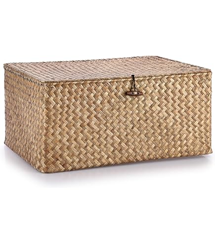 Un lot de 2 paniers tissés de tailles différentes. Couleur : voir photo. La base robuste offre une structure solide pour fournir résistance et durabilité pour une utilisation polyvalente Facile à nettoyer avec... Veuillez noter avant d'acheter Étant donné que nos paniers sont fabriqués à la main à partir de matériaux naturels, les paniers que vous recevez peuvent avoir une légère variation de taille et de couleur. Paniers Pour étagères Chris.W Lot De 2 Bacs De Rangement Plats En Osier Tissé Avec Couvercle Panier De Rangement Jonc De Mer Ces paniers de rangement décoratifs feront une belle décoration sur la table. Ces paniers avec couvercle sont fermés par une boucle et une bande élastique pour ajouter une touche esthétique antique Le set de rangement avec couvercle ajoute une touche agréable aux pièces, couloirs ou n'importe quelle pièce de votre maison. Ce panier d'étagère sans compartiment compliqué. Ces boîtes de rangement en osier sont fabriquées en jonc de mer. Pour contenir des manettes TV, magazines TV, clés, etc. Il s'agit d'un produit naturel qui signifie que le tissage ne sera pas parfait à la machine. IGNPION Panier de rangement en jonc de mer tissé avec couvercle - Boîte rectangulaire pour bureau et salle de bain - Panier décoratif multi-usages (Café, taille L Ce sera une belle décoration en toute saison, les couleurs naturelles seront bien intégrées dans différents styles de décoration pour montrer votre style Idéal pour une utilisation dans le salon, la chambre d'amis, le couloir ou au bureau, dans la boutique ou à la réception IGNPION Panier de rangement ouvert en jonc de mer pour salle de bain - Panier décoratif de bureau pour cuisine, maquillage, coiffeuse, serviette, ornement... Grand set de cuisson : 32 x 28 x 7,5 cm, petit panier : 27 x 23 x 6,5 cm. Tendance et pratique : les paniers en jonc de mer de couleur naturelle et noire remplissent facilement votre étagère et ajoutent un aspect naturel classique et chic à votre intérieur. Un panier avec couvercle est fermé par une boucle et une bande élastique, peut servir de multiples fonctions pour vous aider à classer et cacher les articles pour s'adapter à plus de vos idées de rangement et rendre votre chambre plus rangée visuellement Étant donné que nos paniers sont fabriqués à la main à partir de matériaux naturels, les paniers que vous recevez peuvent avoir une légère variation de taille et de couleur.