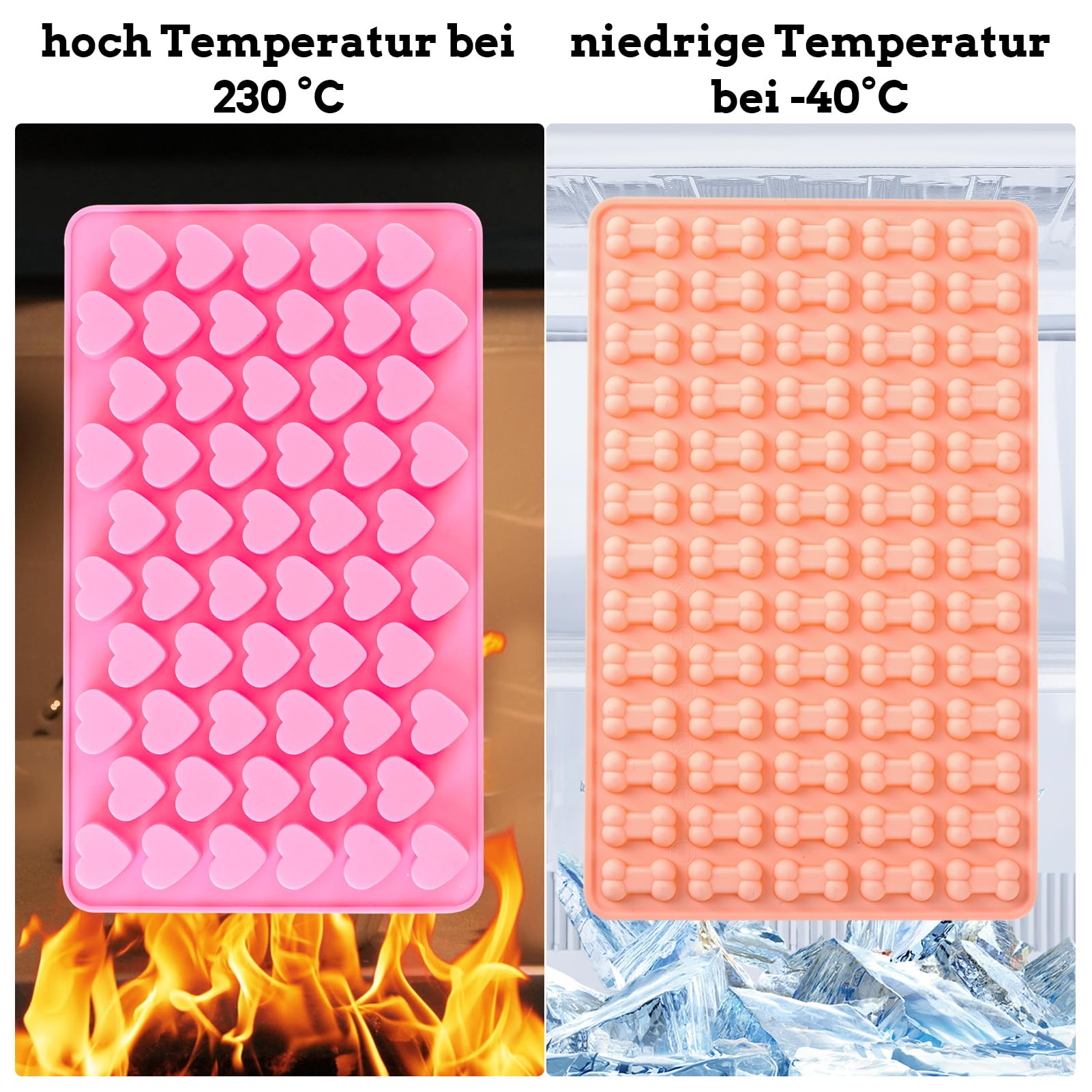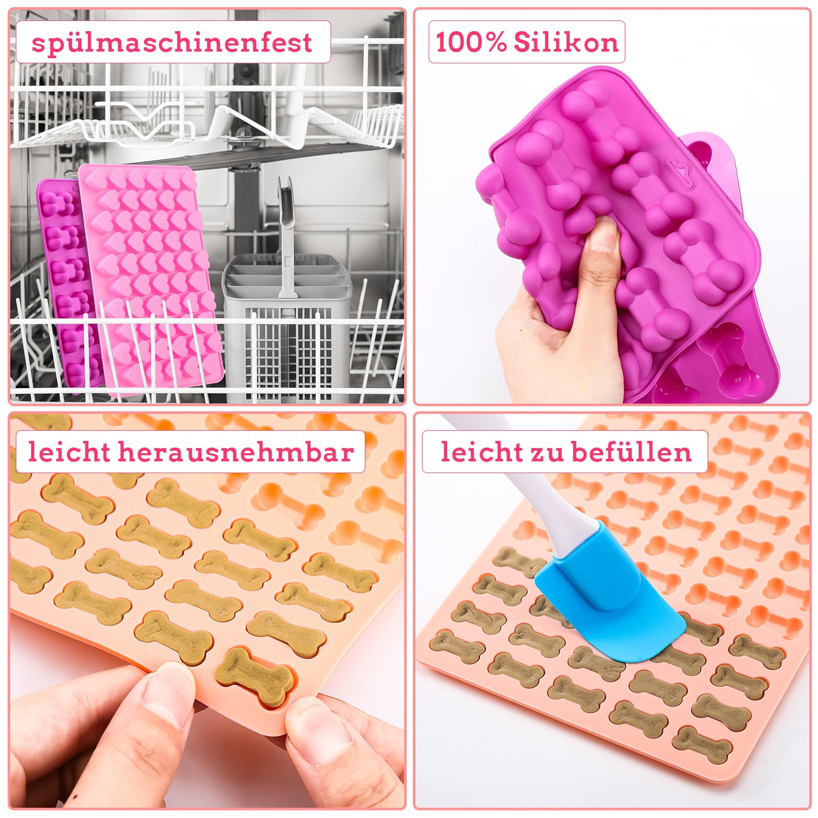 Dimensions de l'emballage : 23,2 x 16,8 x 1,1 cm. Il peut être nettoyé avec une brosse douce et de l'eau chaude savonneuse. Moules silicone pour 18 os et 10 pattes de chien Passe également au lave-vaisselle. Vous pouvez donc les mettre au four pour cuire des biscuits ou au congélateur pour faire de la gelée., 3., Retrait facile du fond : le tapis de cuisson pour biscuits pour chien est très flexible et facile à enlever. Utilisation polyvalente : avec le moule en silicone en forme d'os de chien, vous pouvez non seulement faire des biscuits pour chien, mais aussi de petits desserts tels que des bonbons, des chocolats et des glaçons. Le moule a des trous de suspension sur le dessus et peut être accroché ou plié pour un rangement facile et peu encombrant., 2., Polyvalent : le tapis de cuisson pour chien résiste à des températures allant de -40 °C à 240 °C. Moules Patte Et Os Lot De 2 Moules Silicone Pour Friandises Chien - Formes Os Et Patte Avec Spatule Moule Friandises Chien Facile à nettoyer : le moule à biscuits pour chien en forme d'os n'a pas de saleté et est facile à nettoyer. Il suffit de le rincer à l'eau ou de le mettre au lave-vaisselle. Couleur du produit : rouge, violet. Biscuit Chien Lot De 2 Tapis De Cuisson Pyramidaux En Silicone Et Moule à Friandises Biscuits Chien Contenu de l'emballage : vous recevrez 1 rose, 1 silicone bleu et 2 pipettes, les deux tapis de cuisson sont en forme d'os et en forme de patte de chien... Quick Release : le tapis de cuisson pour chien est conçu avec une couche graphique antiadhésive, une fois refroidi, il suffit de le retourner sur la tête et d'appuyer légèrement sur le fond puis de libérer la nourriture. Lors de la cuisson, mettez un peu d'huile alimentaire sur la surface, puis elle sera plus savoureuse et plus facile à enlever.