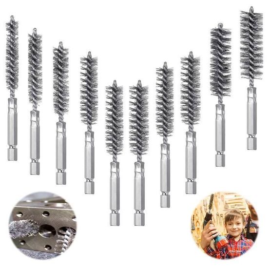 Les tailles sont parfaites pour atteindre les espaces restreints et les zones confinées, assurant un nettoyage en profondeur à chaque fois. Facile à utiliser : chaque brosse métallique pour perceuse dispose d'une tige hexagonale standard de 6,35 mm, qui se fixe facilement à la plupart des perceuses électriques sans fil, meuleuses à moules ou tournevis. Large application : ces brosses en acier inoxydable peuvent être utilisées avec des perceuses, des visseuses à percussion, des meuleuses à moules, etc. et sont parfaits pour les tuyaux, les ports, les roulements, les cylindres ou d'autres zones étroites qui ont besoin d'être nettoyées. Voir plus de détails Pour une utilisation optimale, ne pas dépasser 600 tr/min, éviter la rotation dans le sens inverse des aiguilles d'une montre et utiliser des mouvements push-and-pull pour obtenir les meilleurs résultats de nettoyage. Cette polyvalence rend l'ensemble adapté à diverses applications., 3., Durable et durable. Capacité de nettoyage en profondeur : les poils uniformément répartis de ces brosses métalliques pour perceuse offrent une performance de nettoyage supérieure. Les brosses en acier inoxydable sont conçues pour un nettoyage en profondeur des petits espaces difficiles d'accès. Large application : cette roue métallique pour perceuse est parfaite pour une variété de besoins de nettoyage, y compris le nettoyage de la rouille, de la corrosion et des débris des automobiles, des blocs moteur de moto, des tuyaux, des trous de boulon d'étrier, des tuyaux de condensat et des trous filetés. - Conserver dans un endroit sec pour éviter la rouille ou d'endommager les poils. Lot De 6 Brosses Métalliques Flex Pour Meuleuse D'angle - 75 Mm Et 100 Mm - Brosse Circulaire Avec Modèles M14 X 2 Pour Perceuse De Polissage, Meulage... Ces brosses métalliques sont essentielles pour les projets d'entretien professionnel et domestique. Brosse Metallique Visseuse Lot De 8 Brosses Métalliques épaisses Et Flexibles Pour Brosse Meuleuse Pour Perceuse - Laissez les pinceaux sécher complètement à l'air libre avant de les ranger. Fabriquées avec des poils en acier inoxydable durables, ces brosses sont parfaites pour enlever la saleté, la rouille et les débris des tuyaux, tubes et autres ouvertures étroites. Le design fin permet un accès facile aux trous étroits et aux espaces confinés, ce qui les rend idéaux pour enlever la rouille, la corrosion, les débris et la poussière des voitures, des tuyaux, des ports, et plus encore. Rincez soigneusement la brosse et la zone nettoyée après utilisation., 2., Conseils d'entretien : - Nettoyez les pinceaux avec de l'eau chaude savonneuse après chaque utilisation pour enlever les débris et les résidus. Conduit flexible en acier inoxydable de haute qualité, conduit flexible en acier