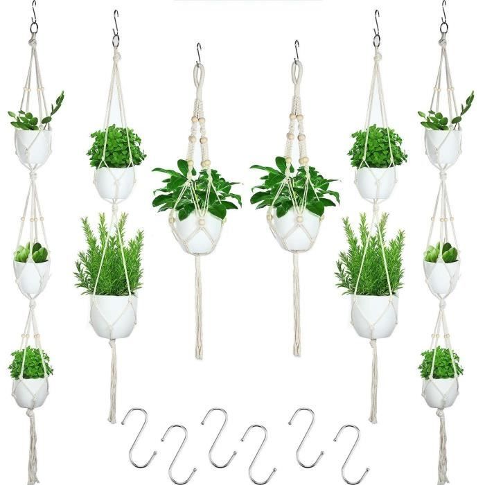 Accrochez-le dans votre salon, salle de bain, chambre, baie vitrée, porche, terrasse, jardin ou bureau. Montrez vos belles plantes avec cette pièce méticuleusement fabriquée à la main. Tout ce dont vous avez besoin sera emballé. Décoration d'intérieur polyvalente : parfait pour améliorer l'ambiance de votre chambre, salon, cuisine, balcon, porche, fenêtre, jardin ou couloir. C'est également un excellent cadeau pour une pendaison de crémaillère, un mariage, un anniversaire, etc. Design unique et moderne : améliorez votre décoration d'intérieur avec notre pot de fleurs en macramé noué à la main. Maison des plantes dans des pots suspendus, ensemble isolé de fleurs... MKO SHUN Le support de plantes en macramé est conçu pour la décoration du salon, en particulier pour les plantes vertes et les pots de fleurs, car vous pouvez décorer votre maison avec les plantes délicates et leur support, ce qui vous apporte une vie et un environnement agréables. Son design tissé d'inspiration bohème ajoute une touche d'élégance à tout espace intérieur ou extérieur. Ils peuvent supporter jusqu'à 5,4 kg et sont adaptés à une variété de tailles de pots, y compris les pots en plastique, céramique, verre et métal. Cintres en macramé faits à la main pour pots de fleurs avec Large application : notre support de plante en macramé est parfait pour une utilisation en intérieur et en extérieur. Lot De 5 Cintres En Macramé Avec 10 Crochets Pour Intérieur Durable et peu encombrant : fabriqué à partir de corde 100 % coton naturel de haute qualité, douce et durable, nos cintres pour plantes sont conçus pour durer. Gardez vos plantes à l'abri des animaux domestiques et économisez de l'espace dans votre maison. Nous nous consacrons toujours à fournir des produits haut de gamme à un bon prix Matériau. Acier inoxydable et coton · Couleur. Ivoire · Fonctionnalité spéciale. Durable. · Style. Moderne · Type de jardinière. Pot de fleurs · Forme. Rectangulaire Voici les outils nécessaires dans le colis, y compris les crochets, les vis, les chevilles de montage, etc.