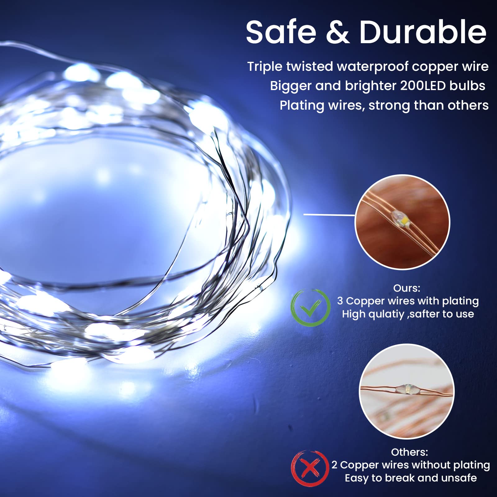 Maintenant, vous pouvez prendre de mignonnes petites « perles » et les utiliser pour décorer votre maison. 【Sûr et fiable】 : nous choisissons des matériaux de haute qualité pour les perles de lampe et le câble afin de maintenir une température et une tension basses pendant le travail, ne vous inquiétez pas des risques de sécurité au toucher. La fonction de mémorisation est très conviviale, vous n'avez donc pas besoin de la régler à chaque fois. Christmas Decorations Eyesgood Guirlandes Lumineuses Exterieure Sapin De Noel 6 Pièces LED Guirlande Lumineuse 6m En raison de sa faible intensité lumineuse, elle est utilisée comme lumière Chili Guirlandes Lumineuses Extérieure Solaire Guirlandes Lumineuses Au... 【Fonctionnement pratique】 : 8 modes d'éclairage sont réglés (Combinaison/ En vague/ Changement continu/ Lente incandescence/ Chasse et flash/ Flash lent/ Scintillement et flash/ Lumière continue), très mignon et intelligent. Pour illuminer votre sapin de Noël et créer une ambiance chaleureuse, optez pour une guirlande lumineuse spécialement conçue pour cet usage. Disponibles dans différentes longueurs et couleurs, les guirlandes lumineuses sapin apporteront une touche festive à votre décoration de Noël Parfaitement adapté comme cadeau. 【Etanche et résistante au gel】 : nous avons mis en œuvre une conception strictement étanche pour les perles de la lampe, les câbles et le boîtier de la batterie afin de garantir qu'aucune eau ne s'infiltre à l'extérieur. Aigostar - Guirlande de Noël LED extérieure 200xLED/8 fonctions 13x0,6m