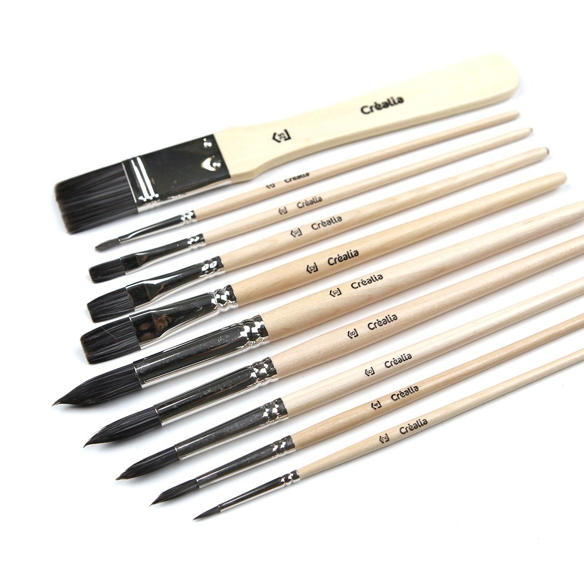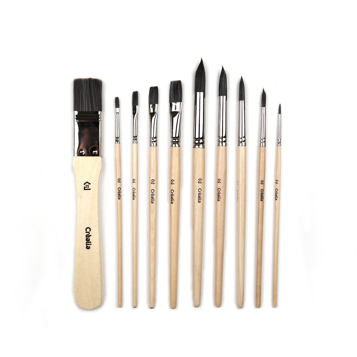Pinceaux de qualité supérieure pour un maximum de contrôle. Comprend : ce lot de 7 pièces Creative Mark Vesta comprend les ronds 0 et 1, Bright 2 et 4, Flat 6, Filbert 8 et 12 Set De 7 Pinceaux, 5 Martre 210, 1 Synthétique Et 1 Soie De Porc Prince August Sp2 3760165001720 Avec une variété de onze nouveaux ensembles, ils sont idéaux pour tous les types de création artistique. Choisissez parmi des ensembles naturels, synthétiques... Unique : la technologie thermique de pointe est utilisée pour courber les poils vers l'intérieur pour imiter la construction imbriquée des poils ; ce traitement donne aux poils une élasticité ferme qui les fait rebondir après chaque coup Creative Mark FX Lot De 10 Pinceaux à Effets Spéciaux Avec Ruban Unique, Multi-lignes, Pinceau Angulaire Pour Aquarelle, Acrylique Diluée Et Peinture à L'huile Cerise sur le gâteau, les pointes de poils marquées vous permettent de ramasser et de distribuer facilement de grandes quantités de peinture. Parfait pour : peindre avec des huiles, des alkydes et de l'acrylique, contenir de grandes quantités de peinture, peinture de style impasto, étaler uniformément les peintures épaisses, débutants et professionnels Caractéristiques : poils synthétiques imitant la construction imbriquée, filaments traités thermiquement courbés vers l'intérieur, élasticité ferme et rétention de forme, pointes de poils marquées pour plus de peinture, et naturellement résistant à l'effilochage Caractéristiques : poils synthétiques imitant la construction imbriquée, filaments traités thermiquement courbés vers l'intérieur, élasticité ferme et...