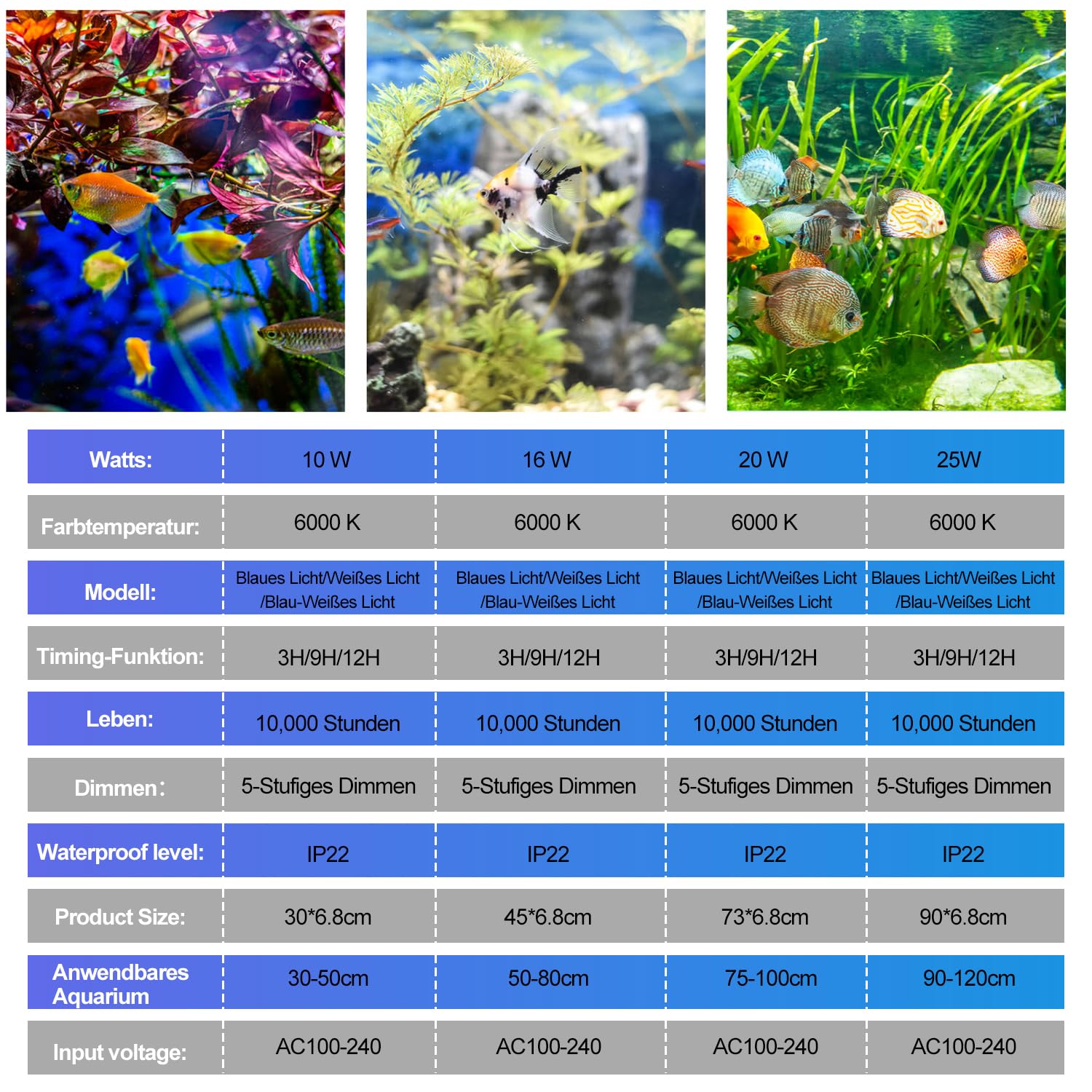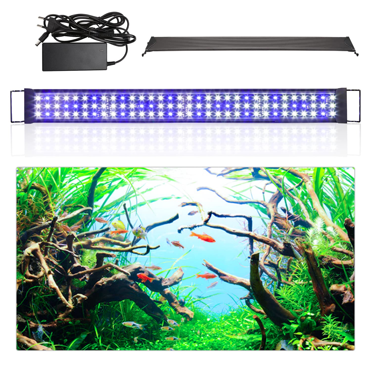 Haute luminosité et longue durée de vie : lampe d'aquarium de 20 W, technologie LED SMD, résistante à la chaleur et à la corrosion. Boîtier en aluminium et plastique ABS, facile d'entretien et durable EINFEBEN Lampe d'aquarium à lumière bleue et blanche, adaptée à un éclairage optimal pour la croissance des plantes aquatiques, des poissons tropicaux et autres animaux marins. Ne pas mettre dans l'eau SWANEW LED éclairage d'aquarium, lampe d'éclairage d'aquarium éclairage Pour Aquarium Gamm Vert Pawfly Lumière LED Pour Aquarium Lumière Extensible 24/7 Pour Aquarium Aquarium Complet L'effet décoratif est excellent Il pourrait être placé dans la maison, la chambre à coucher, le bureau., Efficacité énergétique Éclairage LED pour aquarium,Largement utilisé:L'éclairage d'aquarium idéal pour les aquariums, les citernes, les rocailles, les cages d'animaux. Économie d'énergie et haute qualité Avantages : Lampes LED pour aquariums Éclairage Aquarium, Lampe Tube Aquarium Bleue & Blanc Lumière, Dimmable... Indice de protection : IP44