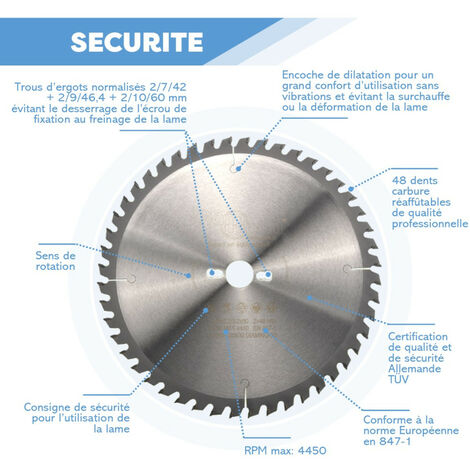 ✅ MATÉRIAUX PREMIUM DURABLES : Fabriqués à partir de matériaux robustes et innovants, nos produits assurent performance, longévité et efficacité, même pour un usage intensif ou professionnel. Nous nous engageons à expédier vos commandes dans les meilleurs délais pour votre satisfaction. Lame circulaire débit - Diamwood - Platinum - D. 350 mm - Al. 30 mm... Tout l’outillage qu’il vous faut Chez Dworx, nous proposons une gamme complète d’outils et de machines adaptés aux besoins des particuliers passionnés comme des professionnels exigeants. Idéale pour scies à onglet, coupe précise avec angle négatif. Réactif et disponible, le service client Dworx est là pour vous accompagner avant, pendant et après votre achat, afin de vous assurer une expérience fluide et sereine. Vous recevez ainsi vos outils dans les meilleurs délais, pour pouvoir passer immédiatement à l’action. Son alésage de 30 mm est compatible avec la plupart des modèles, et elle est livrée avec deux bagues de réduction (30/20 et 30/16 mm) permettant une installation universelle sur différentes machines. Utilisation : Débit. Diamètre : 216 mm. Alésage : 30 mm. Nombre de dents : 24. Vitesse de rotation max. : 6200 Tr/min. Epaisseur dent/pastille : 2,8 mm Un partenaire fiable pour vos projets Avec plus de 15 ans d’expérience, Dworx se positionne comme un spécialiste de confiance pour tous vos travaux. Un packaging soigné Vos produits méritent une protection optimale. Notre objectif est simple, vous fournir un outillage complet, accessible et durable, afin que chaque projet soit mené avec succès. Équipée de 24 dents carbure à denture alternée, elle permet un débit efficace aussi bien sur le bois tendre que sur le bois exotique, avec un excellent contrôle de coupe. Grâce à son angle d’attaque négatif de 5° et son angle de dépouille de 15°, cette lame assure une précision optimale et limite les risques d’arrachement du bois. Une expédition rapide Nous savons à quel point vos projets ne peuvent pas attendre. DIAMWOOD - Lame De Scie Circulaire HM Ø216 x 30 mm Z24 - Débit Bois Tendre Et Exotique - Coupe Nette - Compatible Scies À Onglet Avec Bagues De Réduction La lame de scie circulaire Diamwood Ø216 mm HM est spécialement conçue pour offrir une coupe nette, rapide et précise dans différents types de bois. Une qualité de fabrication irréprochable Chaque outil est sélectionné avec soin pour assurer robustesse et durabilité. ✅ SOCIÉTÉ FRANÇAISE RECONNUE : Depuis plus de 15 ans, nous proposons des produits conçus et expédiés par une entreprise française, offrant un service client réactif et une livraison rapide et fiable. Sa fiabilité, sa robustesse et la qualité de son carbure en font un outil incontournable pour vos travaux réguliers ou professionnels. Scie à Onglet Radiale Lame Scie Metabo 216 Lame De Scie Circulaire 216X30 Mm Avec Adaptateur Pour Al Sage De 20 Mm D 549464 Lame Scie Circulaire 160 Des machines et accessoires pour l’atelier Dworx vous propose une gamme complète de machines d’atelier et d’équipements conçus pour assurer un travail à la fois précis et performant. Un service client à votre écoute Notre équipe met son expertise et ses 15 années d’expérience à votre disposition pour vous conseiller et répondre à toutes vos questions. Sa conception robuste repose sur une épaisseur de dent de 2,8 mm et un corps de lame de 1,8 mm, garantissant à la fois rigidité et durabilité, même lors d’utilisations intensives. Nos gammes couvrent aussi bien l’outillage à main que les accessoires machines, avec une exigence constante : offrir aux utilisateurs des produits fiables et adaptés à un usage intensif comme occasionnel. C’est pourquoi Dworx met tout en œuvre pour assurer une préparation et une expédition rapide de vos commandes. Lame circulaire débit - Diamwood - Platinum - D. 350 mm - Al. 30 mm