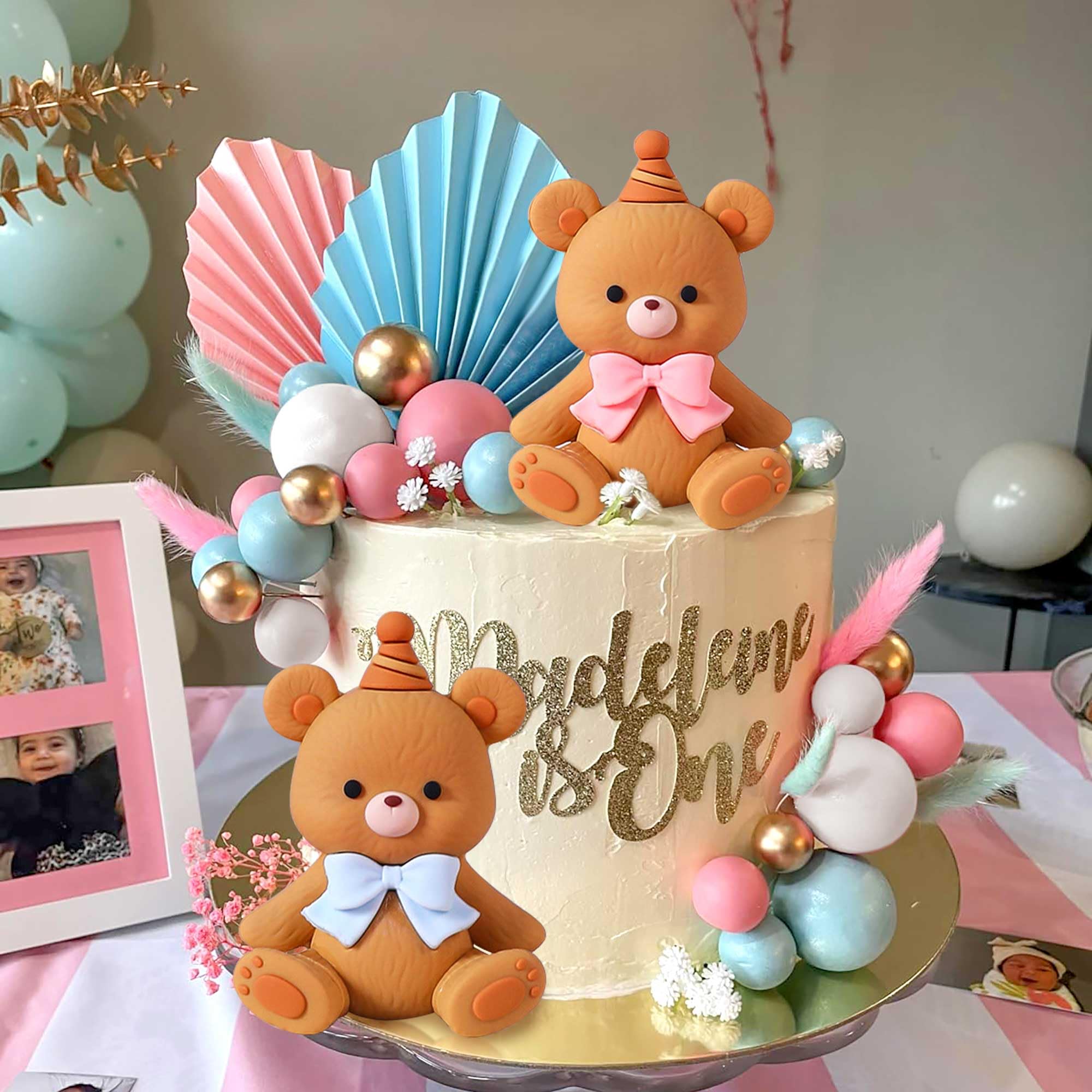 Décoration de gâteau en forme d'ours rose et boule blanche pour fête prénatale, fête d'anniversaire Notre ensemble de décorations de gâteau ours rose a tout pour faire de cette journée une journée inoubliable Contenu : 1 décoration de gâteau en forme d'ours rose, 15 boules, 1 décoration de gâteau arc-en-ciel « Happy Birthday » Bougie fête pyramide de boule blanches - Fête Vous obtiendrez : 5 x boules bleues, 5 x boules blanches, 5 x boules dorées, 1 x décoration de gâteau ballons bleus, 3 x décors de gâteau ours,détails... Decoration Gateau Ours, 27 Pièces Deco Gateau Anniversaire Nounours, Coeur Étoile Boule Décoration De Gâteau, Mignon Cake Topper Pour Enfants Soirées à Thème, Célébrations D'anniversaire (Rose Personnalisez votre gâteau avec nos décorations de gâteau ours pour célébrer votre moment impressionnant