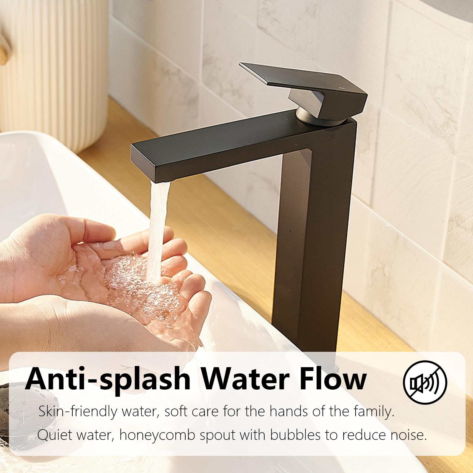 Construction en laiton massif : ce robinet à poignée unique est construit avec un corps en laiton massif sans plomb et une cartouche à disque en céramique pour offrir une performance étanche et robuste. Un avenir sécurisé : nous offrons une garantie à vie et un remplacement (même article de la même couleur), pour ressentir cette confiance et sa fiabilité. Robinet d'évier de salle de bain moderne noir mat pour 1 ou 3 trous Accessoires inclus : bonde pop-up incluse, deux tuyaux flexibles (chaud et froid) et filetage de compression femelle de 9,5 mm avec adaptateurs de 1,27 cm... Design populaire – L'apparence contemporaine peut être utilisée comme robinet d'évier à barre de poignée, comme robinet de douche de salle de bain, robinet d'évier de vanité de camping-car. Robinet De Salle De Bain Noir, Robinet De Lavabo Haut, Robinet Mitigeur Evier A Levier Unique Avec Poignee Carree Amovible 98822911 La chambre à air est fabriquée en PEX certifié par la NSF nord-américaine, ce qui est sûr pour boire. Filtré sur le bec verseur peut filtrer la saleté dans l'eau et empêcher les éclaboussures d'eau, produire un débit fluide. Finition noire mate : la finition noire mate offre un look métallique légèrement mat givré, design rétro classique et tendance ; sans traces de doigts, résiste à la corrosion, décore parfaitement votre salle de bain. Apportez une touche d'élégance à votre salle de bain avec notre robinet de salle de bain noir mat.Mitigeur lavabo noir acier inoxydable levier unique eau chaude et froide avec tuyaux inclusAttention, veuillez vérifier attentivement la taille avant d'acheter pour éviter tout problème pour vous.Caractéristiques:Le robinet de lavabo est en acier inoxyable 304 durable. Eau saine non toxique...