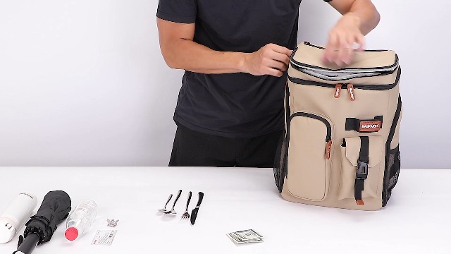 Étanche et résistante à l'eau : notre doublure de sac à dos isotherme adopte un processus de pressage à chaud sans couture de haute technologie pour une étanchéité optimale. Grande capacité et plusieurs compartiments : dispose de 2 compartiments isothermes pour refroidir les boissons et les aliments secs, le sac principal peut contenir jusqu'à 45 canettes (330 ml). Les bandes réfléchissantes sur les sangles réduisent le risque de voyager la nuit, parfait pour le déjeuner, le pique-nique, le travail, les voyages, la randonnée, le vélo, le parc, la plage et le zoo Boîte à déjeuner chauffante à micro-ondes boîte à ... – Grandado BAGPARKK Sac à dos isotherme léger de grande capacité pour voyage, camping, plage, sac à dos glacière pour homme et femme Un décapsuleur est inclus pour plus de commodité Peut contenir jusqu'à 33 canettes, ce qui le rend idéal pour les aventures en plein air, le talonnage ou les excursions à la plage tout en garantissant... La boucle de poitrine réglable fonctionne parfaitement pour répartir le poids du sac et le garder stable et centré. Sangle de poitrine et design ergonomique : dos rembourré plus épais avec un design ergonomique respirant associé à des bretelles en S réglables, respirantes et rembourrées aident à réduire la fatigue pendant une longue journée de voyage. Le sac à dos de plage dispose également de poches cachées à l'arrière pour votre téléphone portable et vos objets de valeur. Apparence élégante et cadeau idéal : notre sac à dos isotherme convertible peut être utilisé comme un sac à dos de voyage, livré avec style : housse de chariot arrière pour glisser facilement sur les poignées de vos bagages/valises, deux bretelles rembourrées offrent un confort optimal. Matières : Acier inoxydable, PL, PVC, PET · Sac isotherme étanche et imperméable de haute qualité et haute résistance, peut être utilisé comme sac à dos ou porté... Sacs Isothermes Nature Et Découverte BAGPARKK Sac à Dos Isotherme Pour 33 Canettes - Multifonctionnel - Double étage étanche - Avec Sac A Dos Isotherme Randonnée 1 poche supérieure zippée, 2 poches avant et 4 poches latérales pour contenir vos collations et autres accessoires.